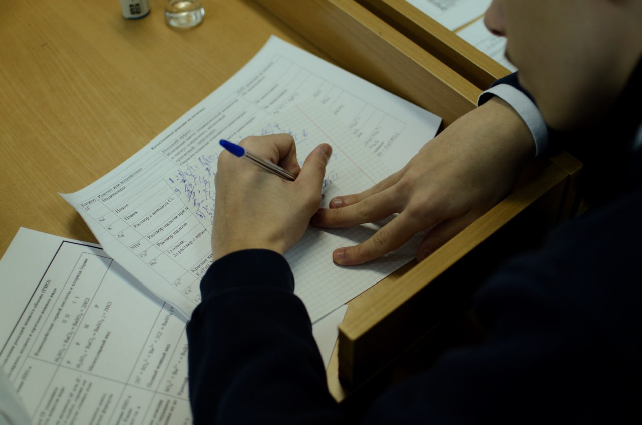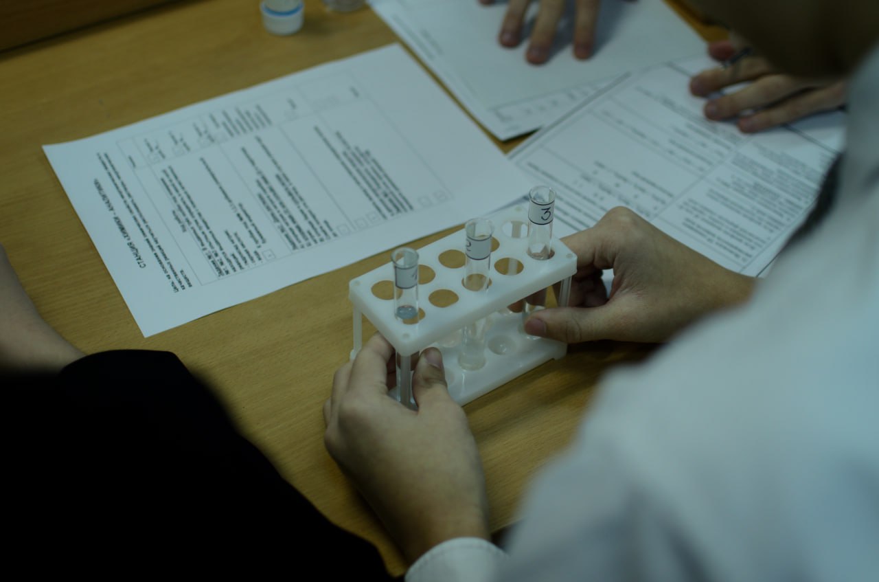 Участники квеста определяли, содержит ли раствор поваренной соли примесь сульфатов, и записывали уравнения соответствующих реакций.