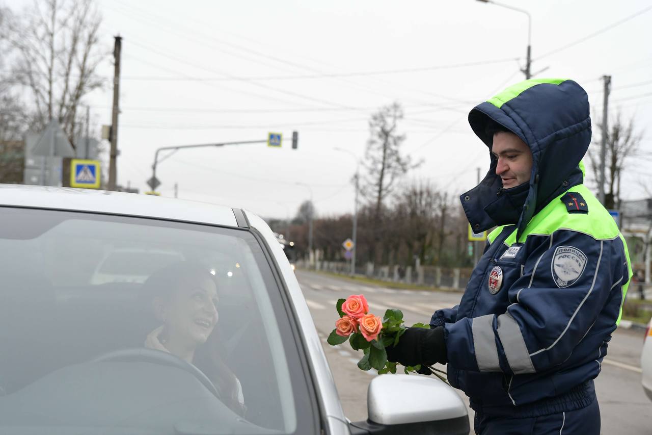 Вместо привычной проверки документов автоледи получали цветы и тёплые слова поздравлений.