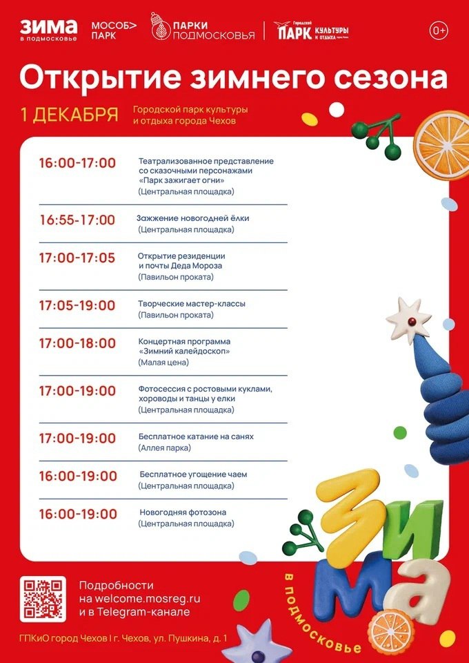 17:00 - 17:05 Открытие резиденции и почты Деда Мороза (павильон проката)