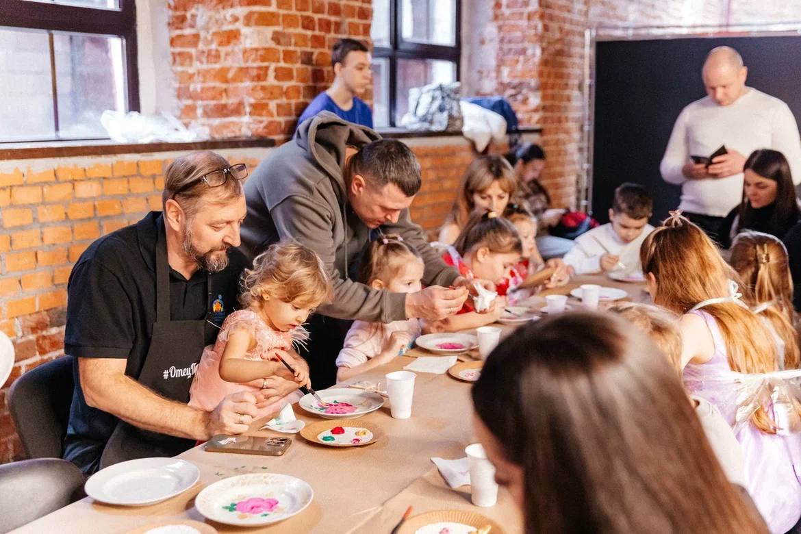 Пока папы и дети осваивали искусство знаменитой «Агашки» на мастер-классе, мамы учились новым красивым причёскам и макияжу. А ТВ «Аист» для всех устроил семейную фотосессию.