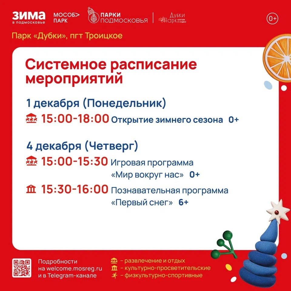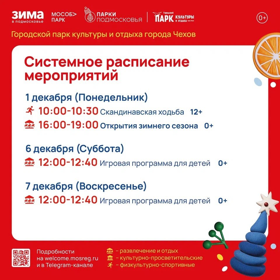 Расписание на неделю в Парках Чехова (1 декабря - 7 декабря).