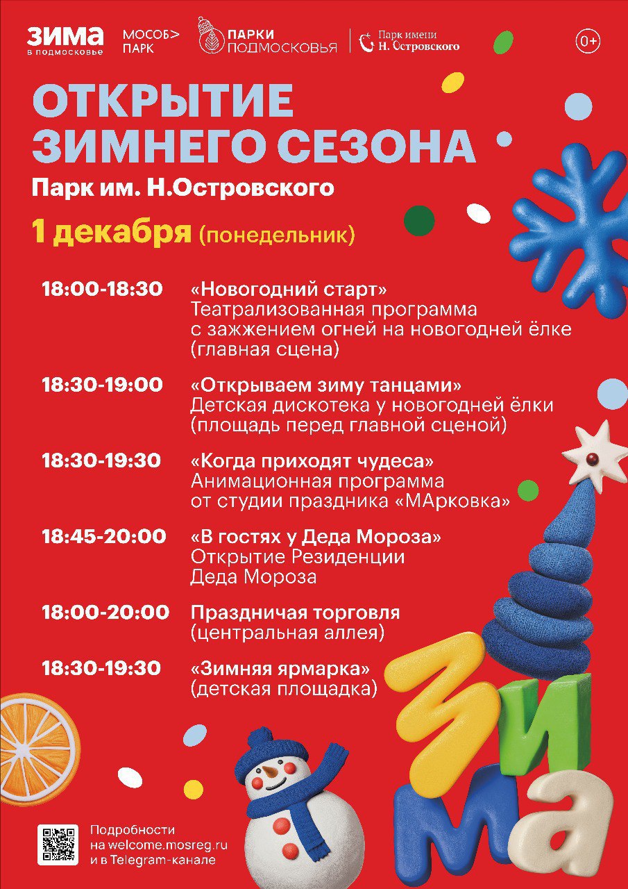 Сегодня, 1 декабря, в наших парках состоится праздничная программа, посвященная открытию зимнего сезона.