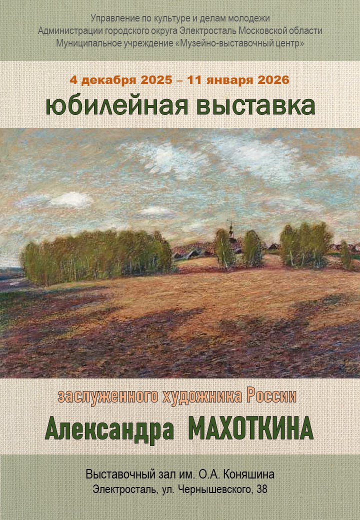 4 декабря в Выставочном зале им. О.А. Коняшина пройдет торжественное открытие юбилейной выставки нашего земляка Александра Махоткина.