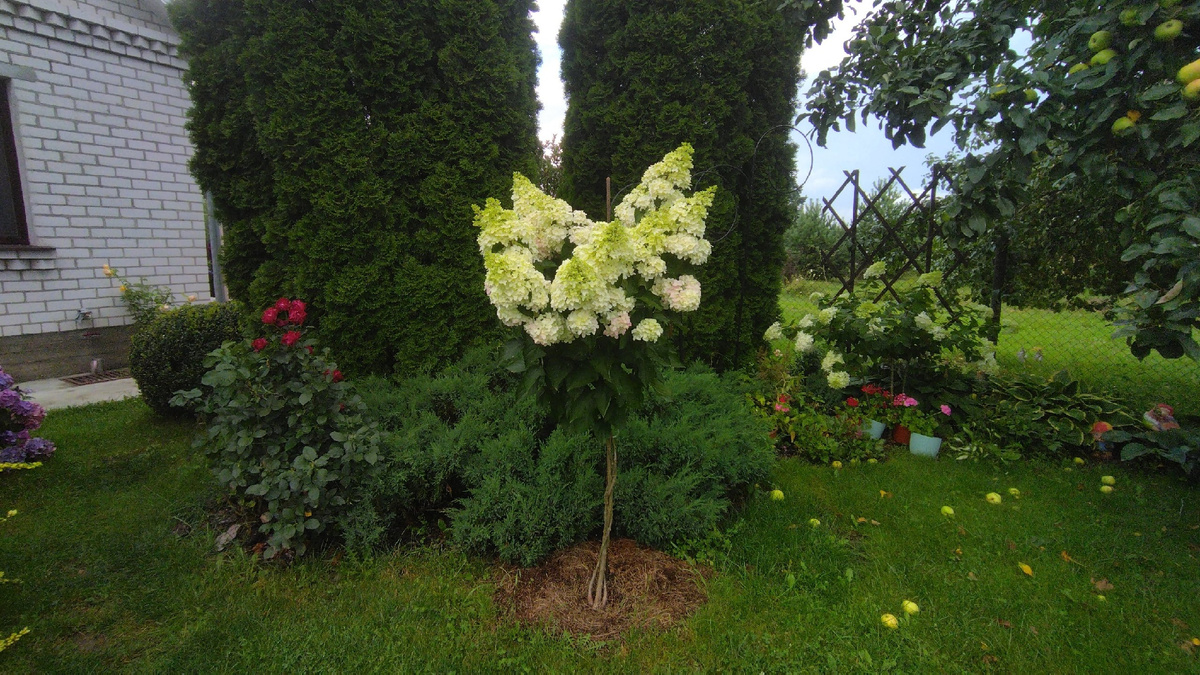 Гортензия Фрайз Мельба, известная своими восхитительными цветами, продолжает привлекать внимание садоводов. Это высокорослый сорт отличается жесткими прямостоячими побегами. Начало цветения наступает с белых соцветий, которые быстро трансформируются в нежно-розовые, а затем в винно-бордовые тона, создавая невероятные цветовые эффекты.