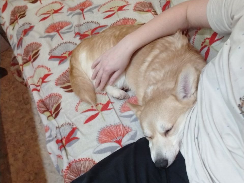 Ветеринар оценил возраст корги примерно в 4 года: собака много рожала, у нее были проблемы с задними лапами и сильно отросшие когти, которые пришлось срезать. В новом доме ее назвали Ютой, она понемногу, привыкает к псу Персивальду и кошке Асе.