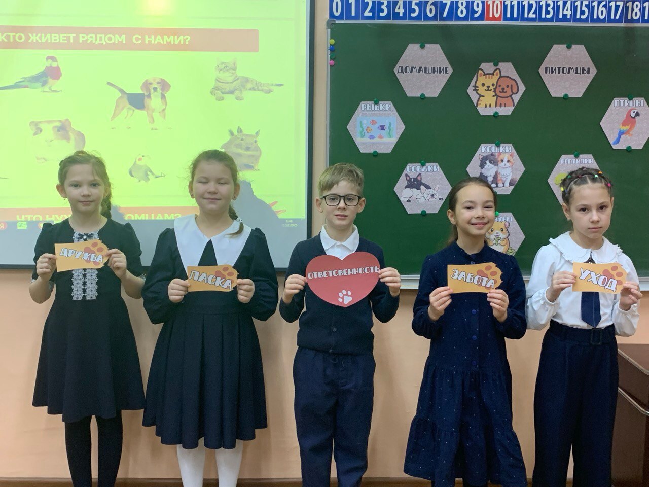 Во время занятия ребята делились историями о своих питомцах, рассказывали, как ухаживают за ними и почему решили их завести. Школьники обсудили понятие «братья наши меньшие» и их важность в жизни.