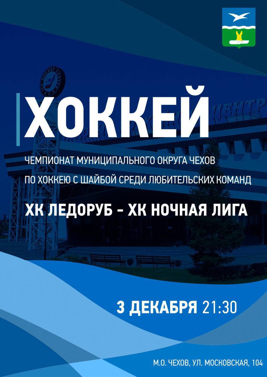 Уже в эту среду, 3 декабря, в Ледовом дворце стартует Чемпионат муниципального округа Чехов по хоккею с шайбой среди любительских команд!