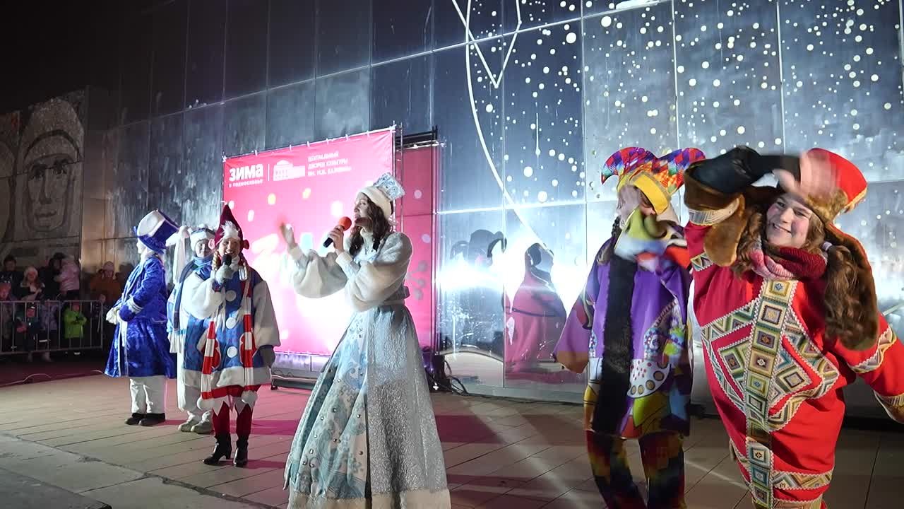 На Центральной площади ребят встречали сказочные герои, все вместе зажгли огни на главной ёлке города.