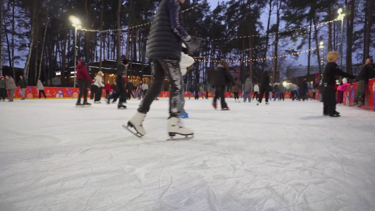 Лёд искусственного катка в парке «Ёлочки» опробовали вместе с семьями участников СВО.