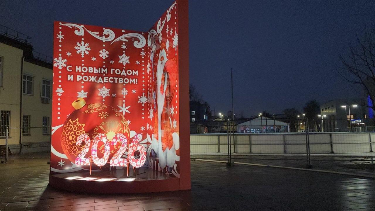 Привлекают внимание водителей и пешеходов новогодние конструкции с Дедом Морозом и праздничной датой «2026 год», которые установили на главных площадях Люберец.