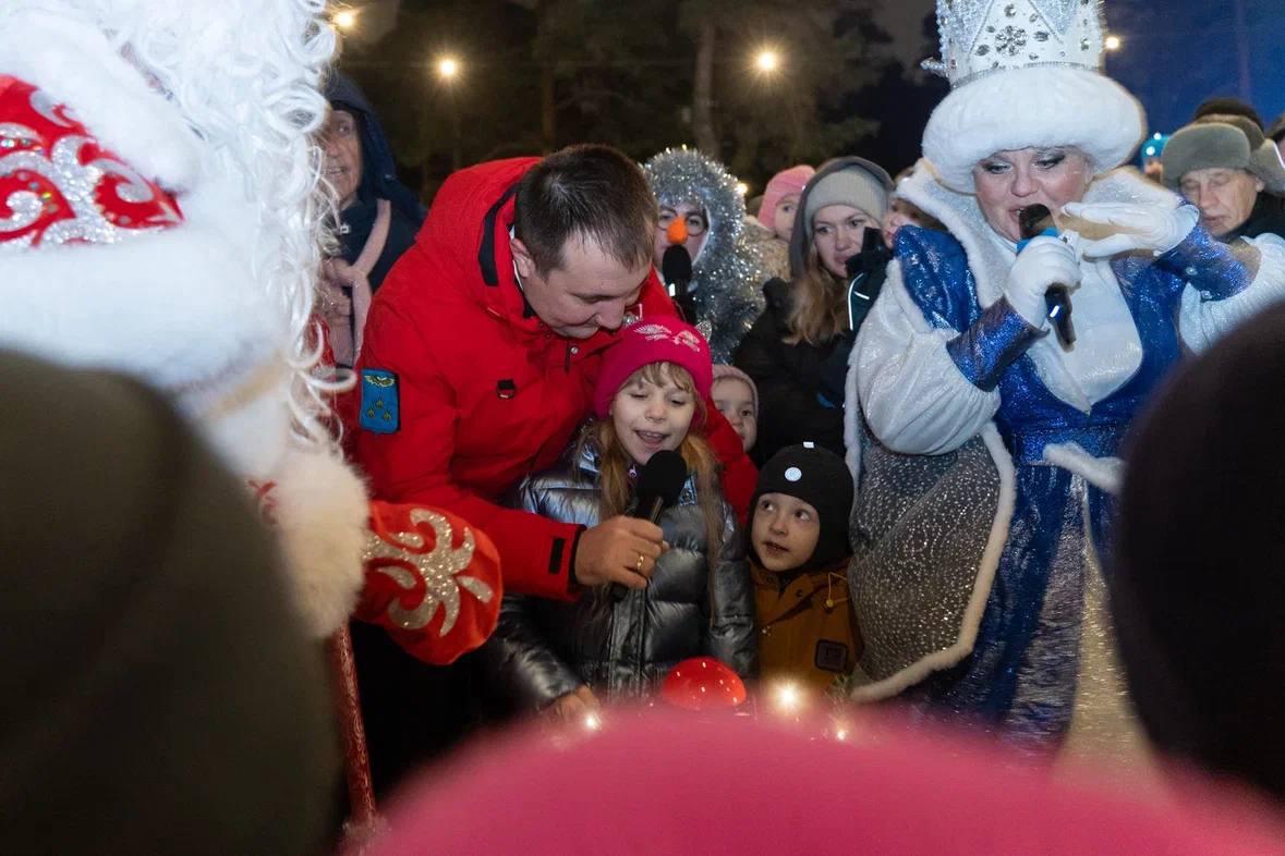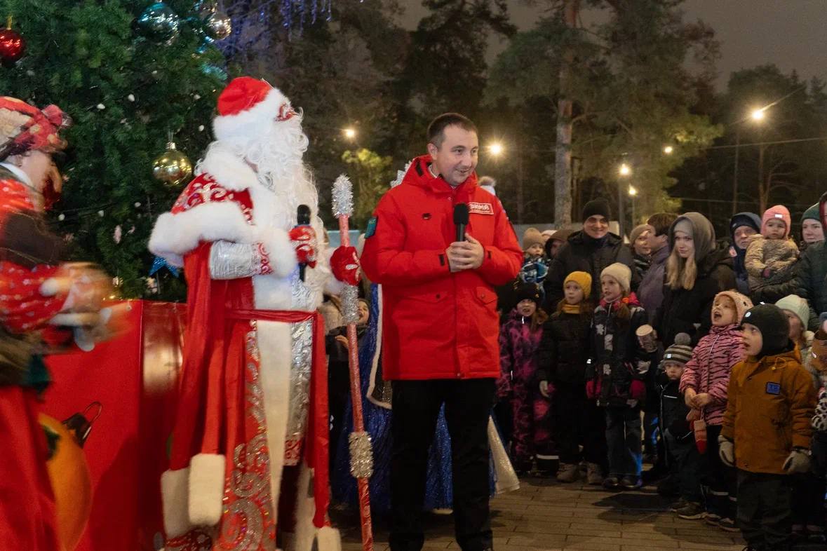 Торжественная церемония зажжения новогодних огней состоялась одновременно у Дворца культуры и в городском парке.