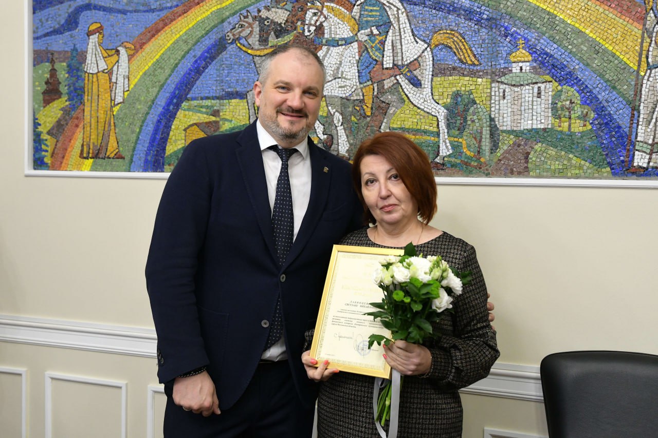 За многолетнюю добросовестную работу и большой вклад в развитие системы финансового контроля вручил благодарственные письма: