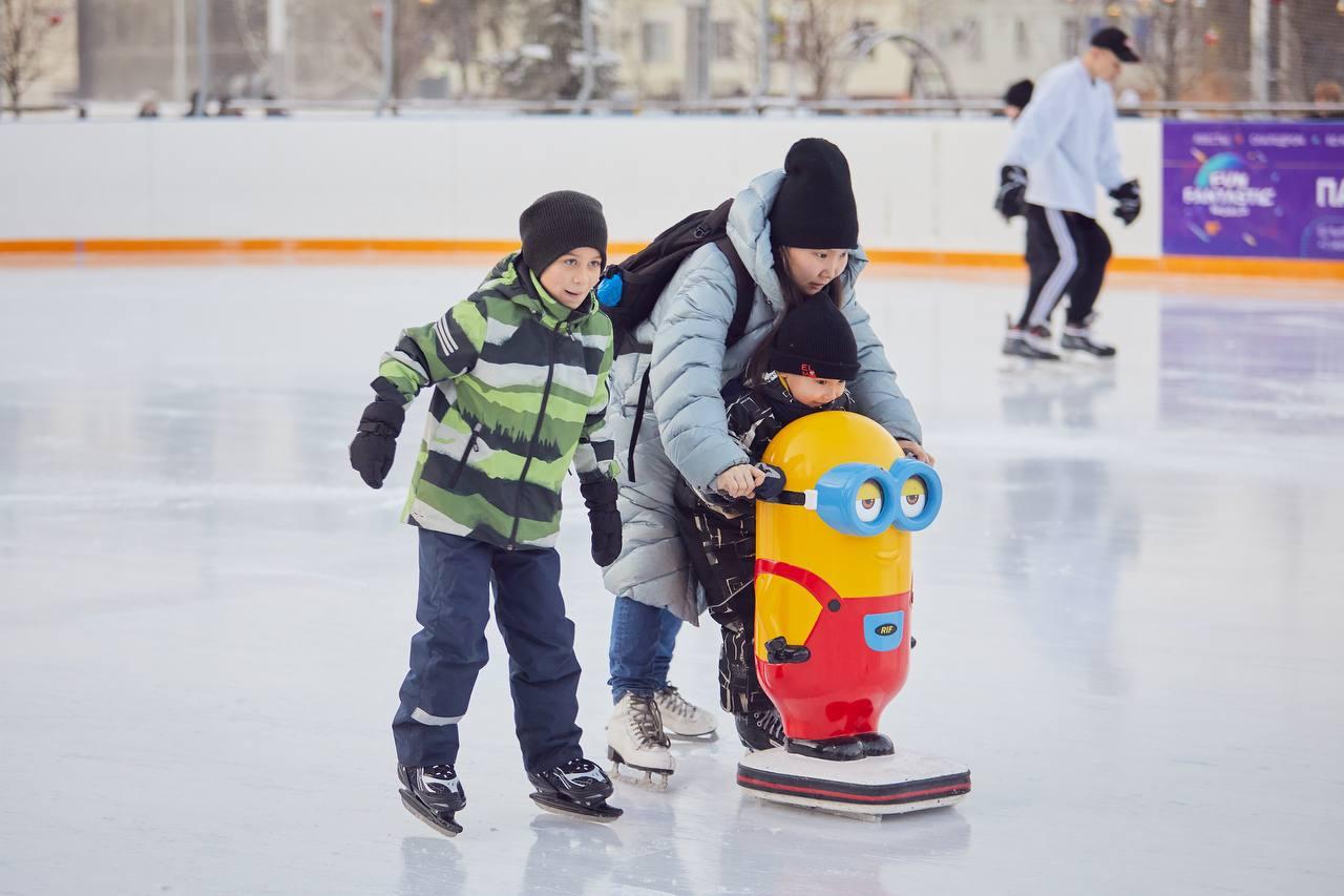 Каток работает ежедневно с 11:00 до 21:00. Специально для всех желающих по вторникам и четвергам проводятся бесплатные сеансы с 11:00 до 12:00. Приглашаем всех желающих на каток!