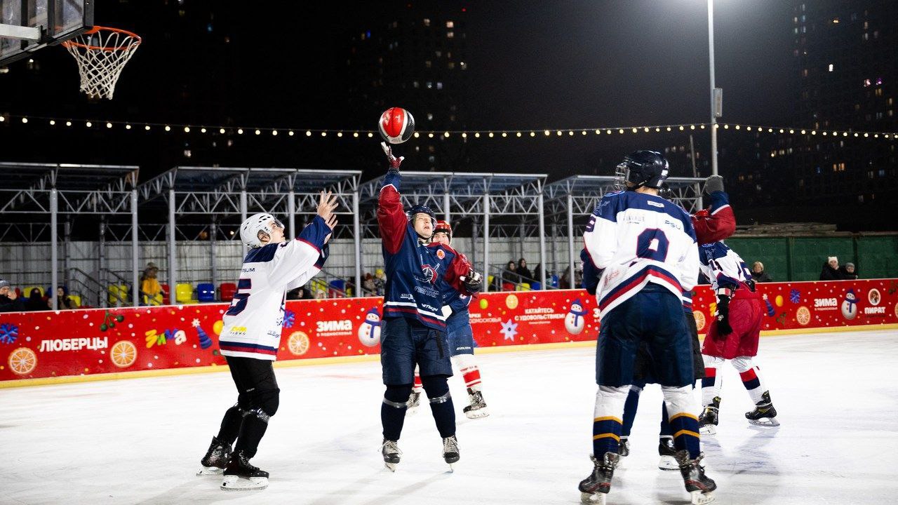 Матч по баскетболу на льду прошел в Люберцах в рамках открытия зимнего сезона в парках