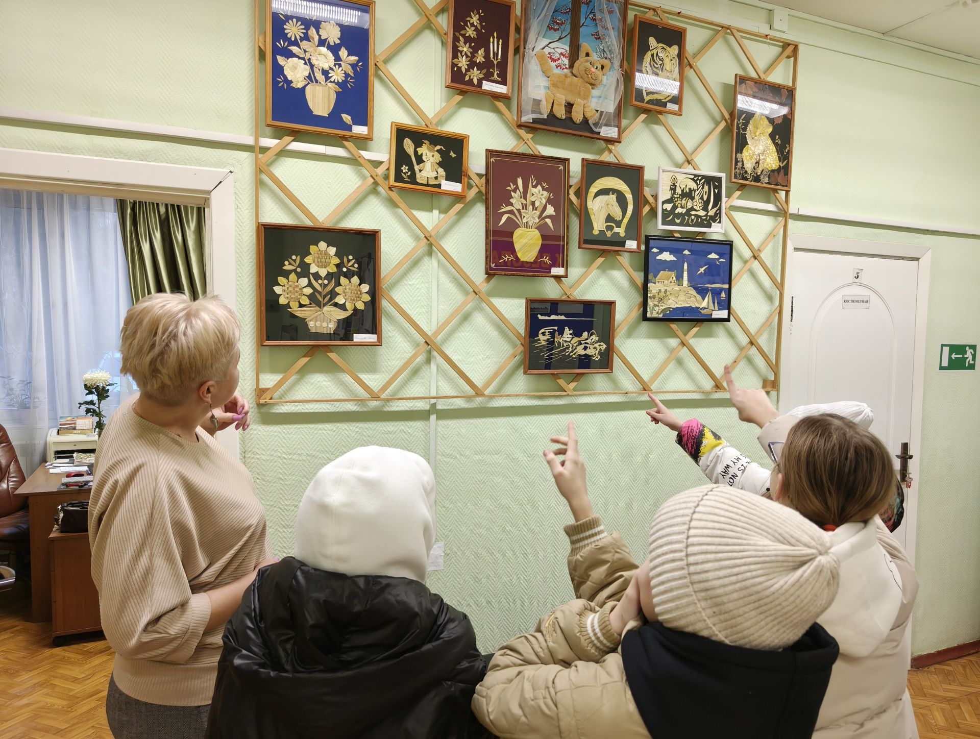 Кружок прикладного творчества «Кудесники» порадовал новыми работами в технике аппликации из соломы и природных материалов, а в зрительном зале мам ждал сюрприз в виде оформленной выставки фотопортретов.