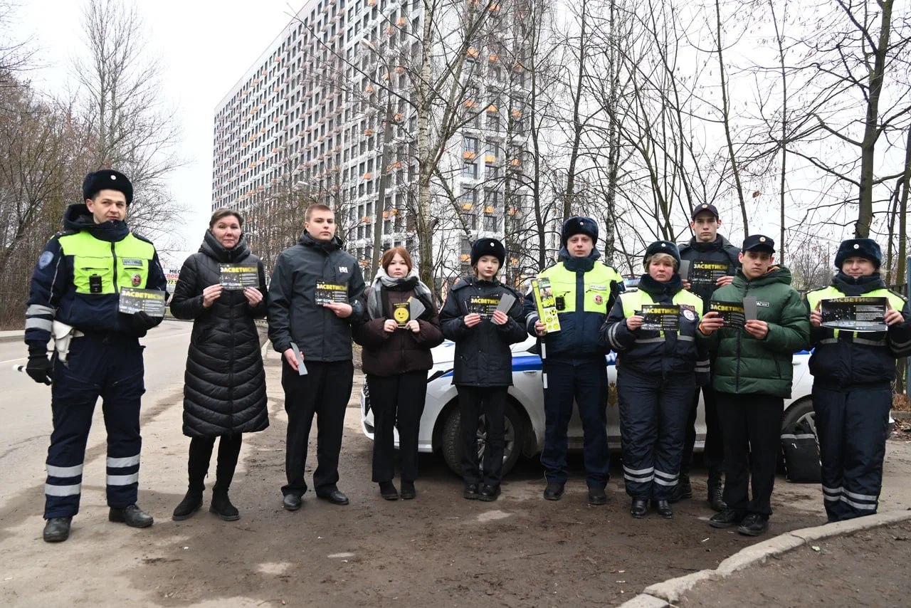 В посёлке Развилка сотрудники Госавтоинспекции УМВД России по Ленинскому городскому округу и студенты профессионального колледжа «Московия» 1 декабря провели ежемесячную акцию «Засветись!», направленную на профилактику дорожнотранспортных происшествий с участием пешеходов.