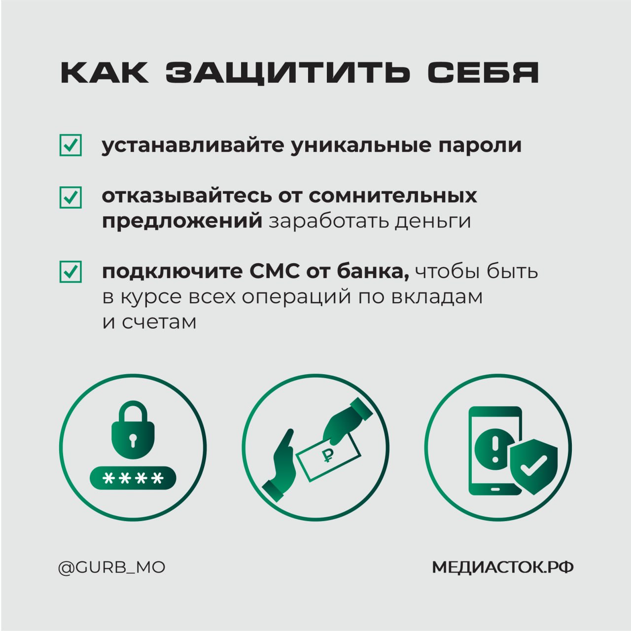 Напоминаем основные правила безопасности. О том, как защитить себя от интернет-угроз, – в карточках.