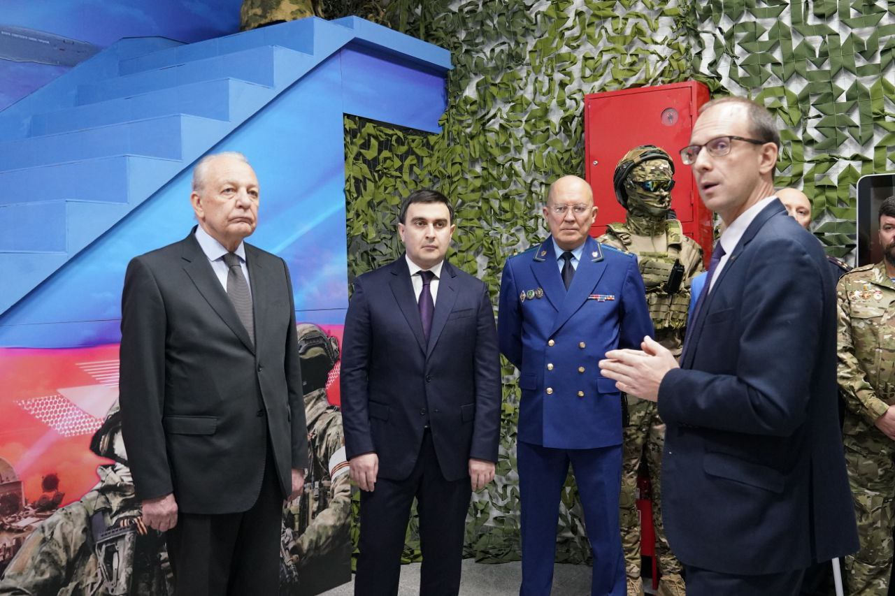 Вместе с Героем Труда России, Почетным гражданином Московской области и Реутова, Генеральным директором - Генеральным конструктором НПО машиностроения Александром Георгиевичем Леоновым осмотрели экспозицию «Сыны Отечества» в Музейно-выставочном центре Реутова.