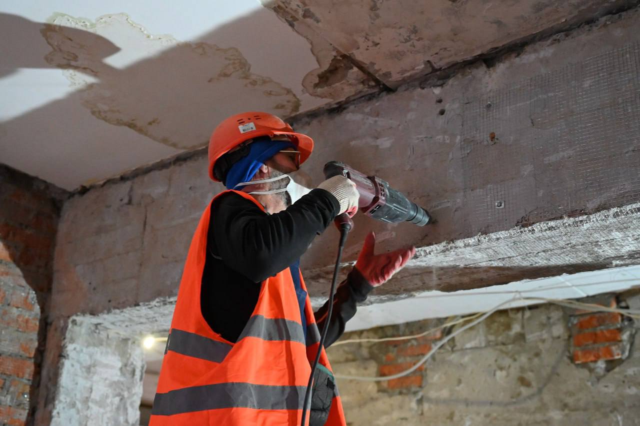 В исторической части здания проводится реставрация кирпичной кладки на лестничной клетке и в фойе с последующей защитной обработкой. Также запланирована реставрация кирпичного фасада. Покраска пристройки здания будет осуществлена под цвет кирпича.
