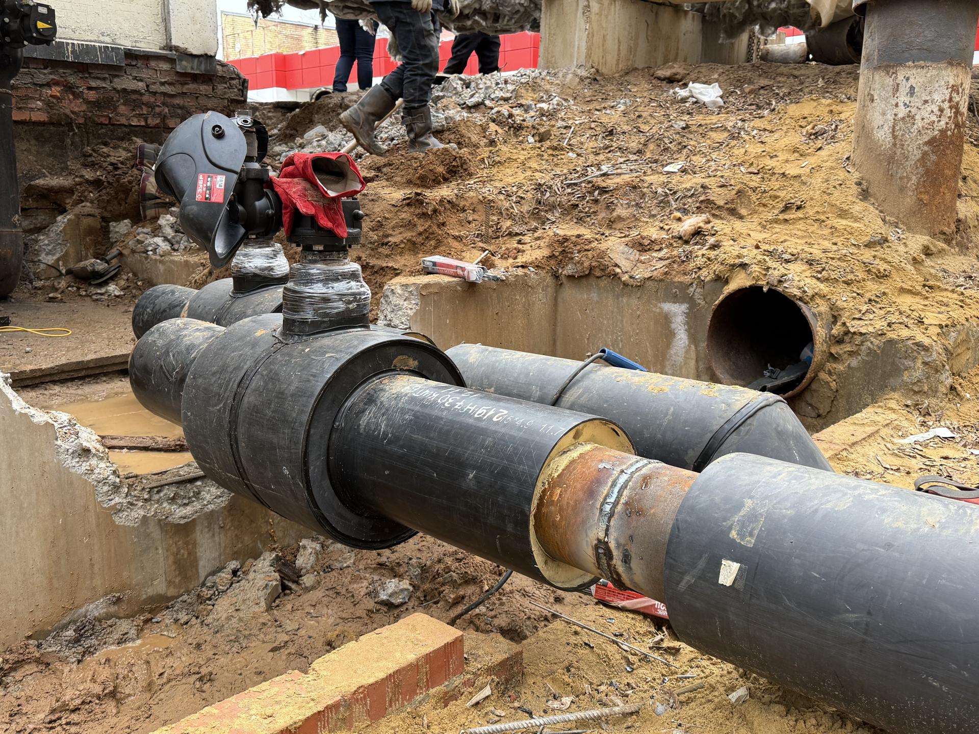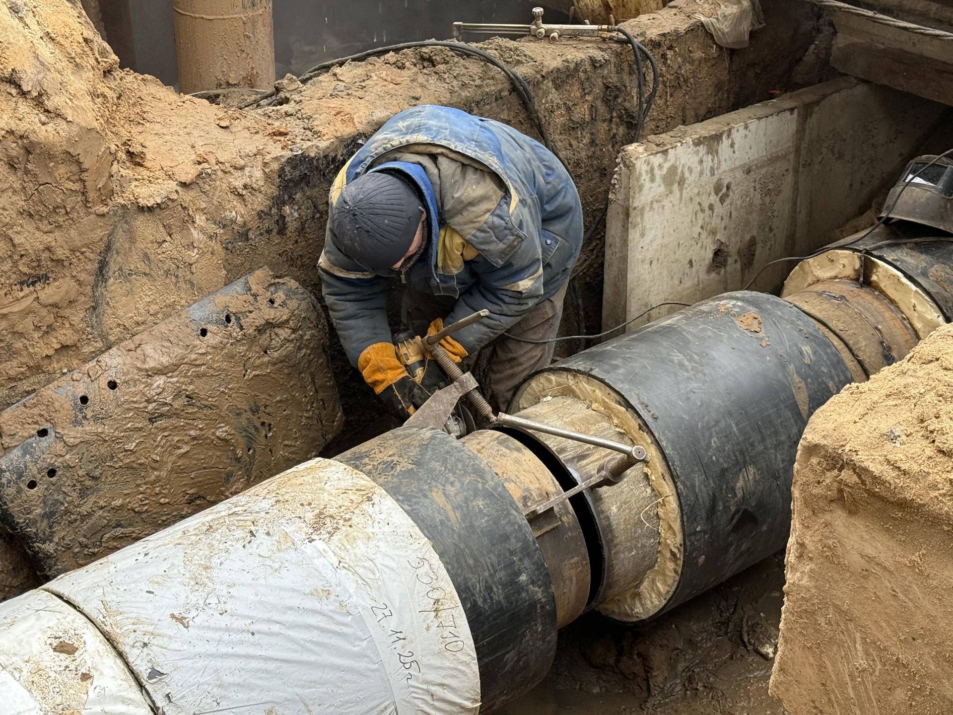 На данном этапе к действующей магистрали подключают последние 700 метров новой теплотрассы, успешно прошедшей гидравлические испытания.