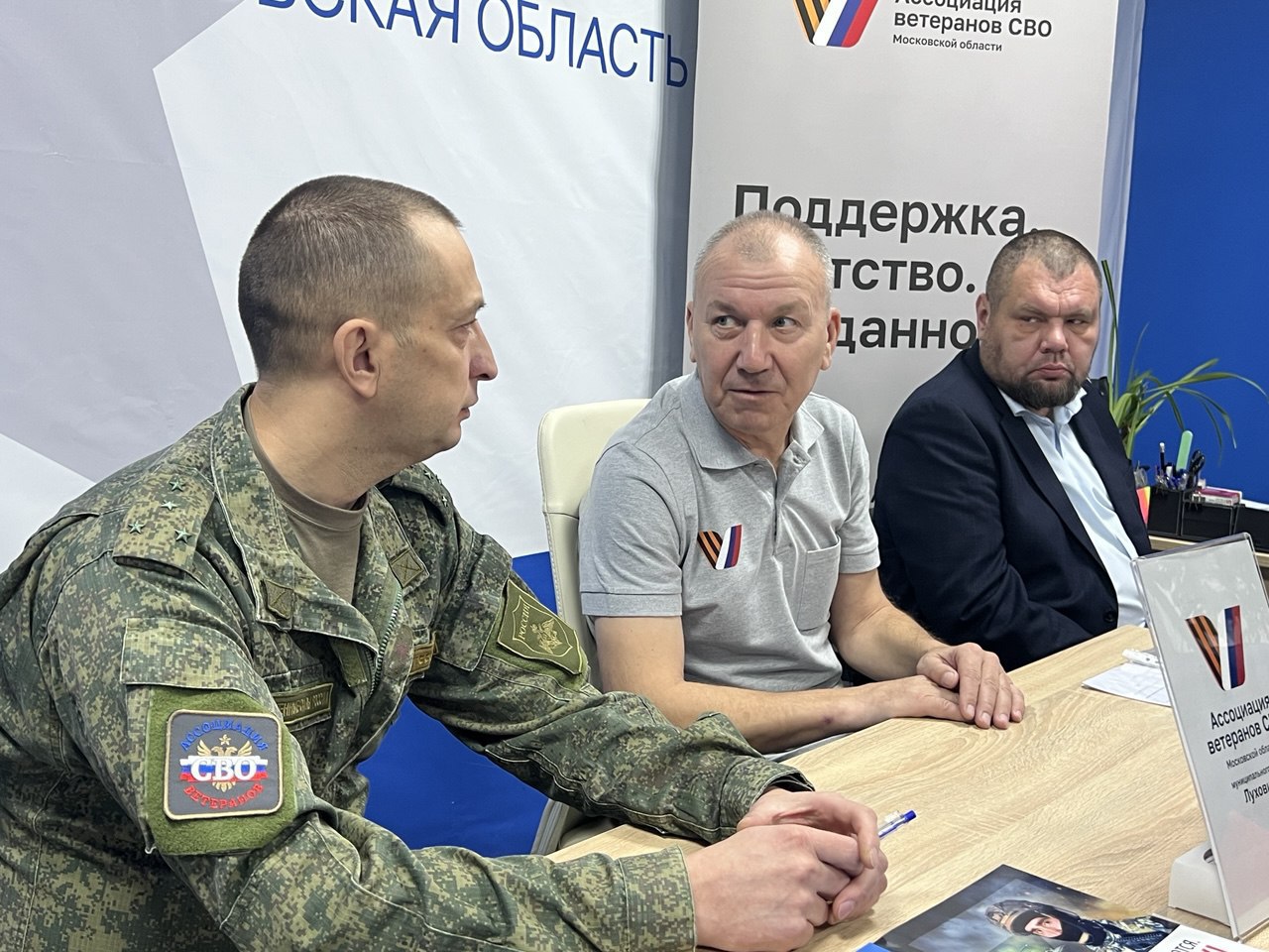 Руководитель коломенского отделения Ассоциации ветеранов СВО Подмосковья Алексей Каратеев встретился с коллегой - председателем луховицкого отделения Ассоциации Николаем Поляковым. На встрече присутствовали советник главы Городского округа Коломна Дмитрий Глодов и военнослужащие – участники специальной военной операции.