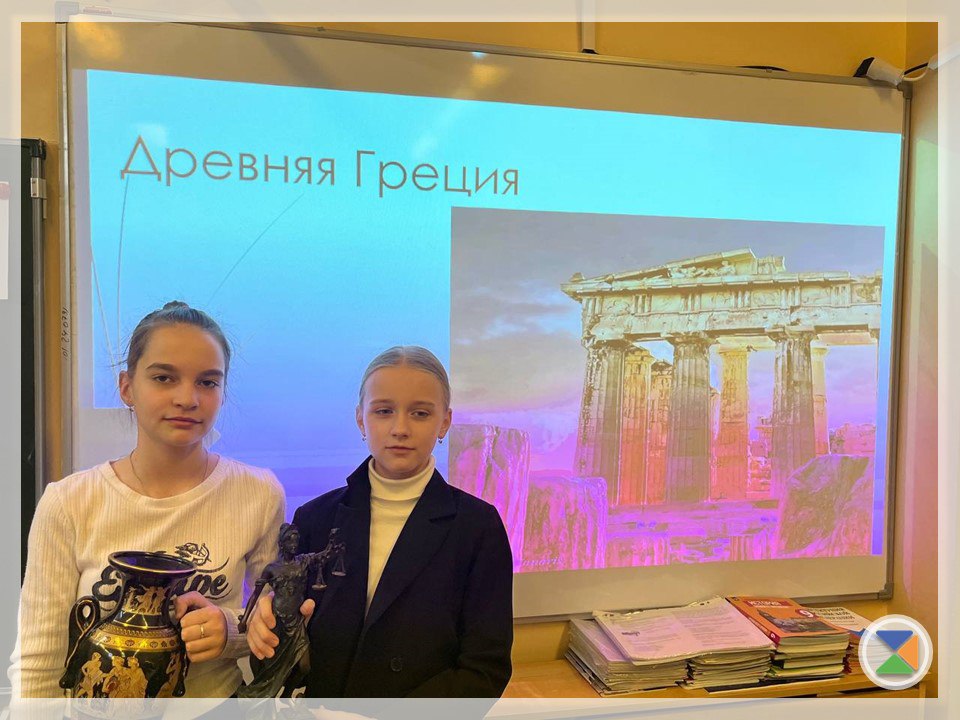 Наши самые юные историки совершили виртуальное путешествие в Древнюю Грецию! Учащиеся окунулись в атмосферу легендарной страны, узнавая интересные факты и погружаясь в дух античности. Апогеем стал проект «В Греции всё есть» Сикайло Ксения и Крылова Алина (5а класс), особое внимание уделялось демонстрации образцов греческой керамики. Чернофигурные вазы стали настоящим украшением проекта, показывая высокий уровень мастерства как современных, так и древних мастеров.