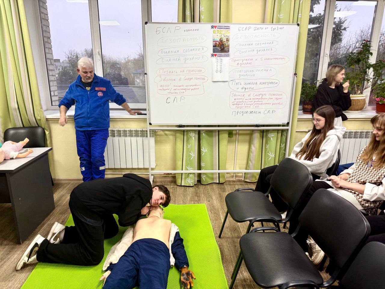 Медики продемонстрировали учащимся 9-х классов гимназии №5 алгоритм действий при оказании первой помощи, уделив особое внимание сердечно-легочной реанимации. Ребята смогли практически отработать на манекенах технику непрямого массажа сердца и искусственного дыхания.