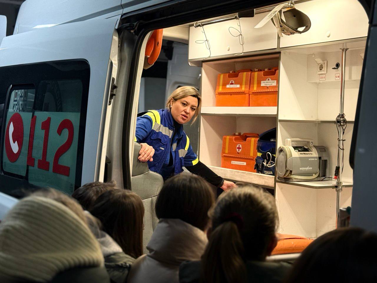 В завершение занятия ребята увидели работу диспетчеров, познакомились с оснащением реанимобиля и его функциональными возможностями.
