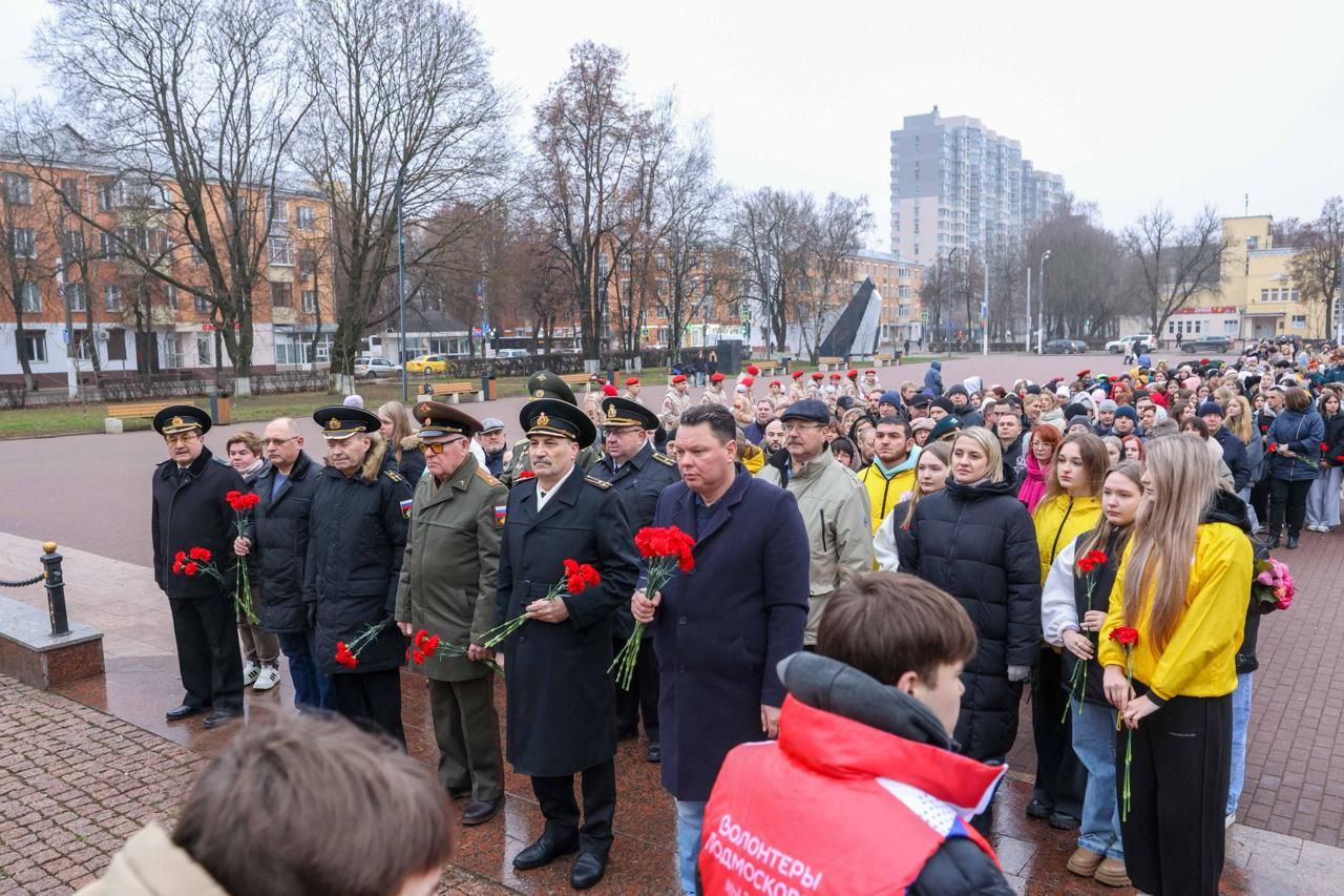 В этот день вместе с жителями возложил цветы к знаковым мемориалам Подольска, почтил минутой молчания память защитников столицы.