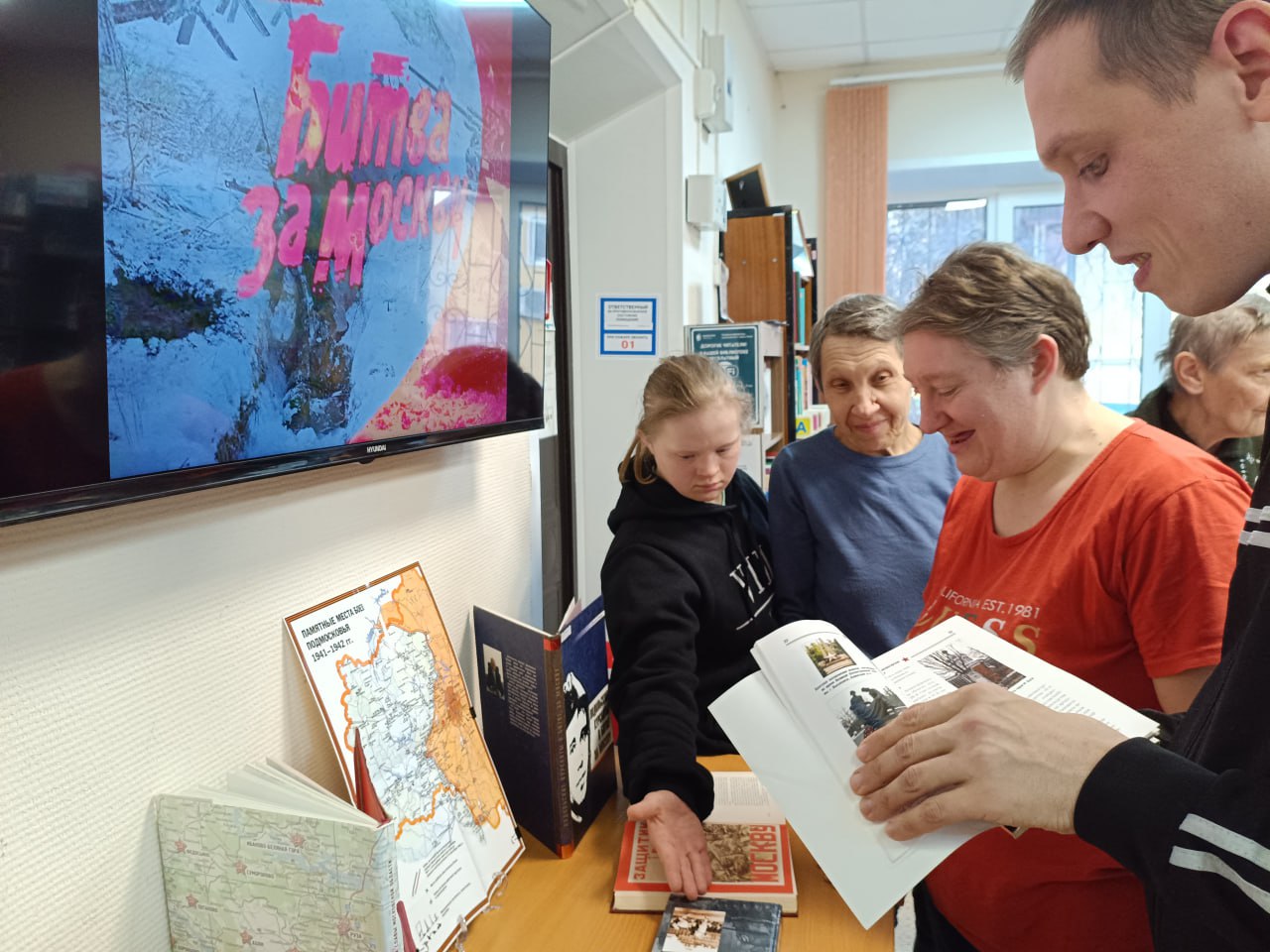 Для получателей социальных услуг Учреждения "ДОБРЫЙ ДОМ "ЧЕХОВСКИЙ" в Троицкой библиотеке прошел Час воинской славы «Вехи памяти и славы». Гостей ожидал просмотр видео-хроники событий Великой Отечественной войны, связанной с оборонительными боями за Москву, которые продолжались долгие месяцы. На мероприятии участники обсудили, что Московская битва 1941 года нанесла первый сильный удар по Германии, разрушив миф о ее непобедимости, тогда на защиту столицы поднялся весь народ.