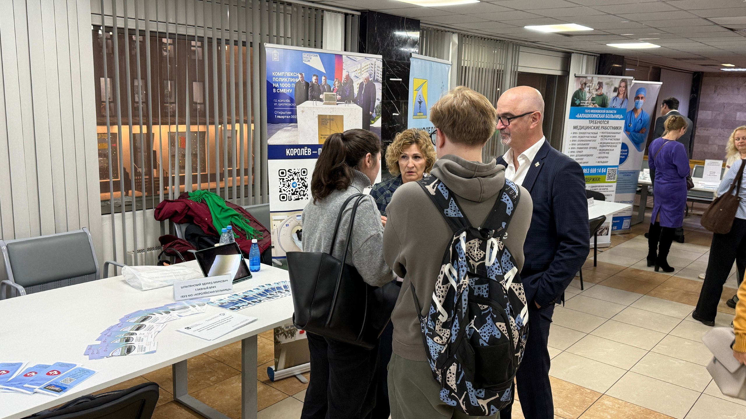 Королёвскую больницу студентам представили главный врач Эдуард Шпилянский и его заместитель по кадрам – депутат Совета депутатов наукограда Любовь Кошкина. В ходе общения со студентами они осветили ключевые аспекты работы учреждения: рассказали о перспективах трудоустройства, системе наставничества и многочисленных инструментах социальной поддержки медицинских работников.