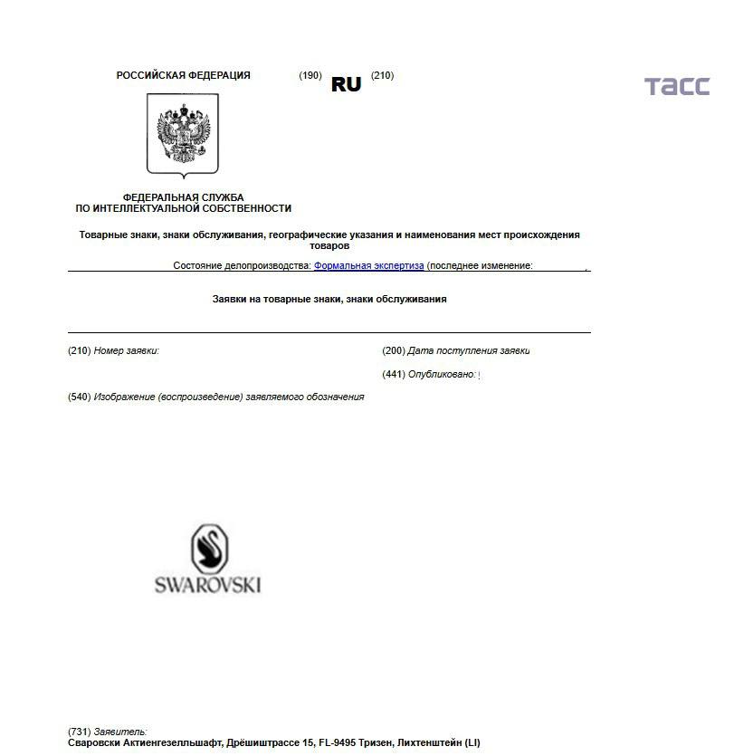 Swarovski подал заявку на регистрацию одноименного товарного знака в России, пишет ТАСС.