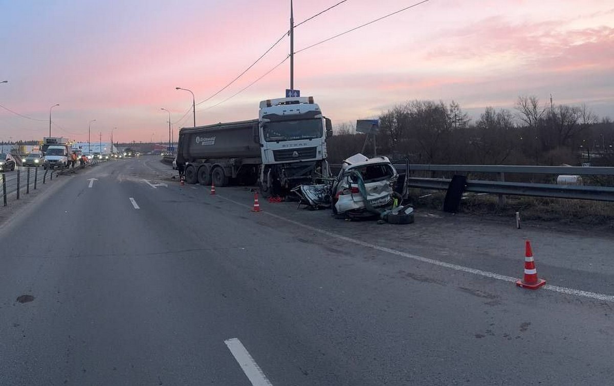 В Подмосковье женщина погибла в ДТП с грузовиком. На кадрах, опубликованных прокуратурой, видно, что водитель фуры потерял управление, машина пробила ограждение, вылетела на встречную полосу и врезалась в два легковых автомобиля.