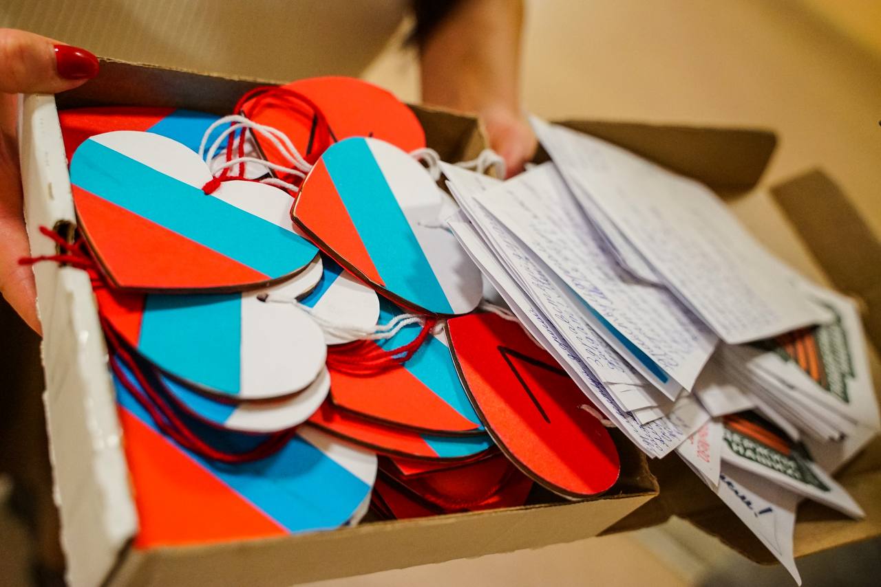 Но есть и что-то особенное – это талисманы в виде сердечек, которые сделали школьники своими руками. Каждое сердечко — маленькое послание, наполненное теплом и надеждой.