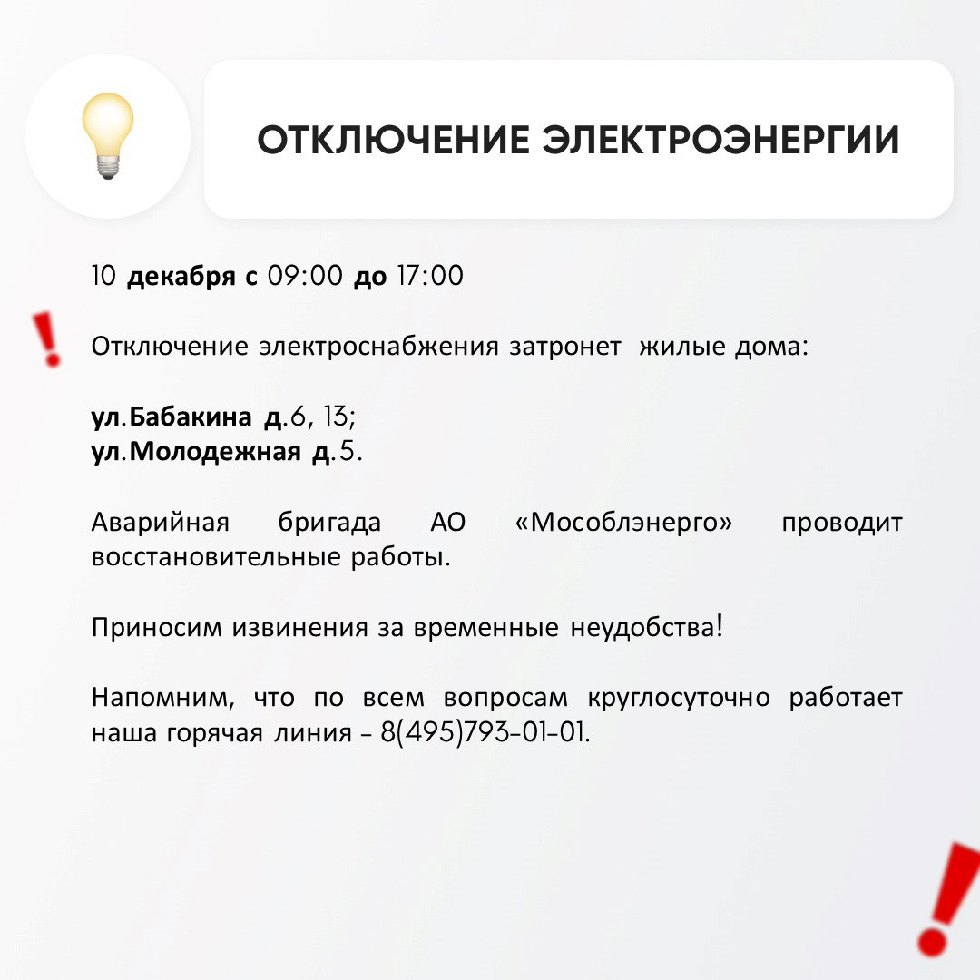 Временное отключение электроснабжения