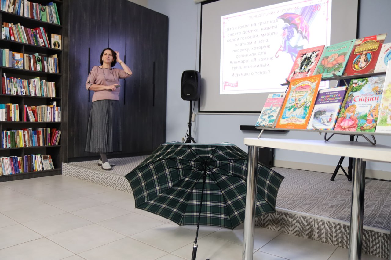 Дети узнали, кто такой Оле-Лукойе, и отправились в увлекательное путешествие по страницам волшебных снов маленького мальчика Яльмара. Слушали сказку, отвечали на вопросы литературной викторины «Под зонтиком Оле-Лукойе», познакомились с книжной выставкой «Волшебный мир сказок Андерсона» и смотрели мультфильм.