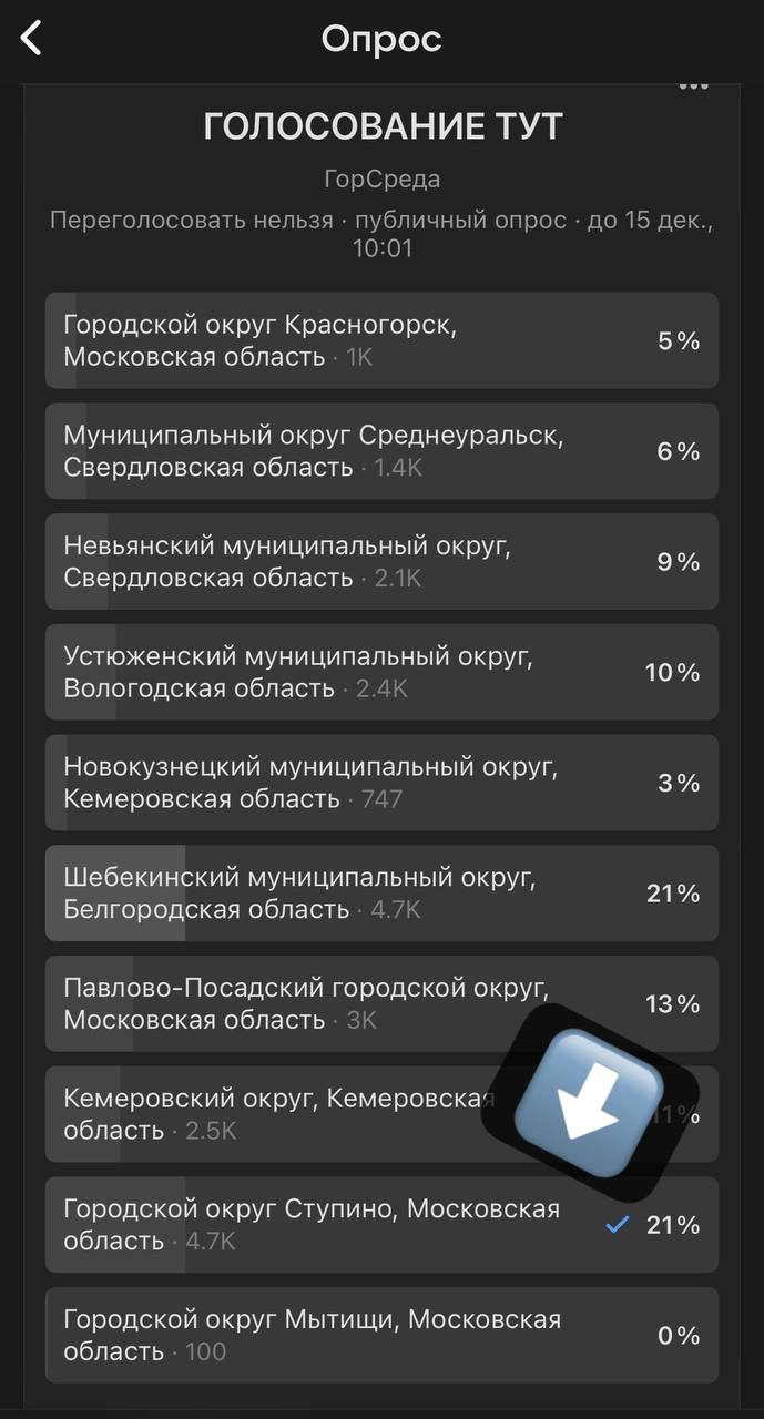 Голосование проходит на платформе сообщества «ГорСреда» в социальной сети ВКонтакте
