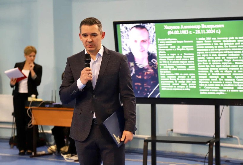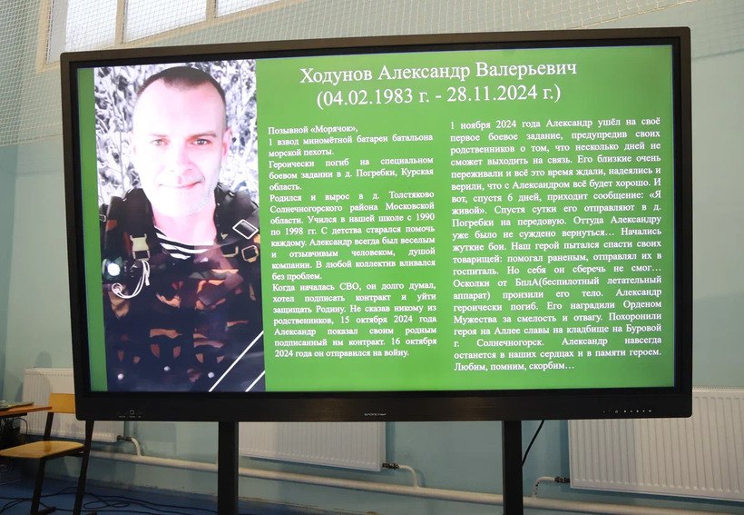 , в лицее №1 в Смирновке, состоялось открытие мемориальной парты в честь матроса Александра Ходунова, военнослужащему батальона морской пехоты - героя, погибшего в 2024 году.