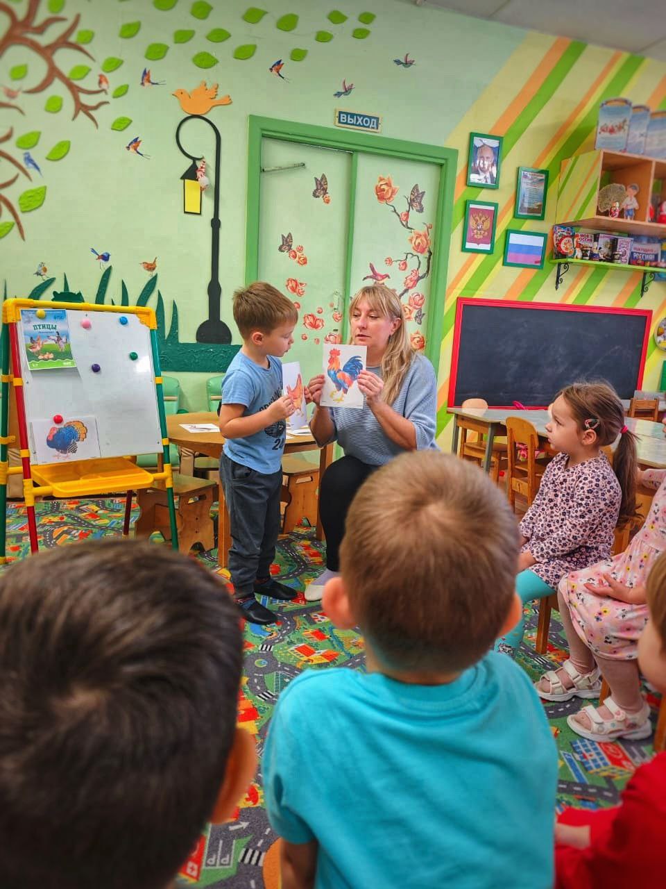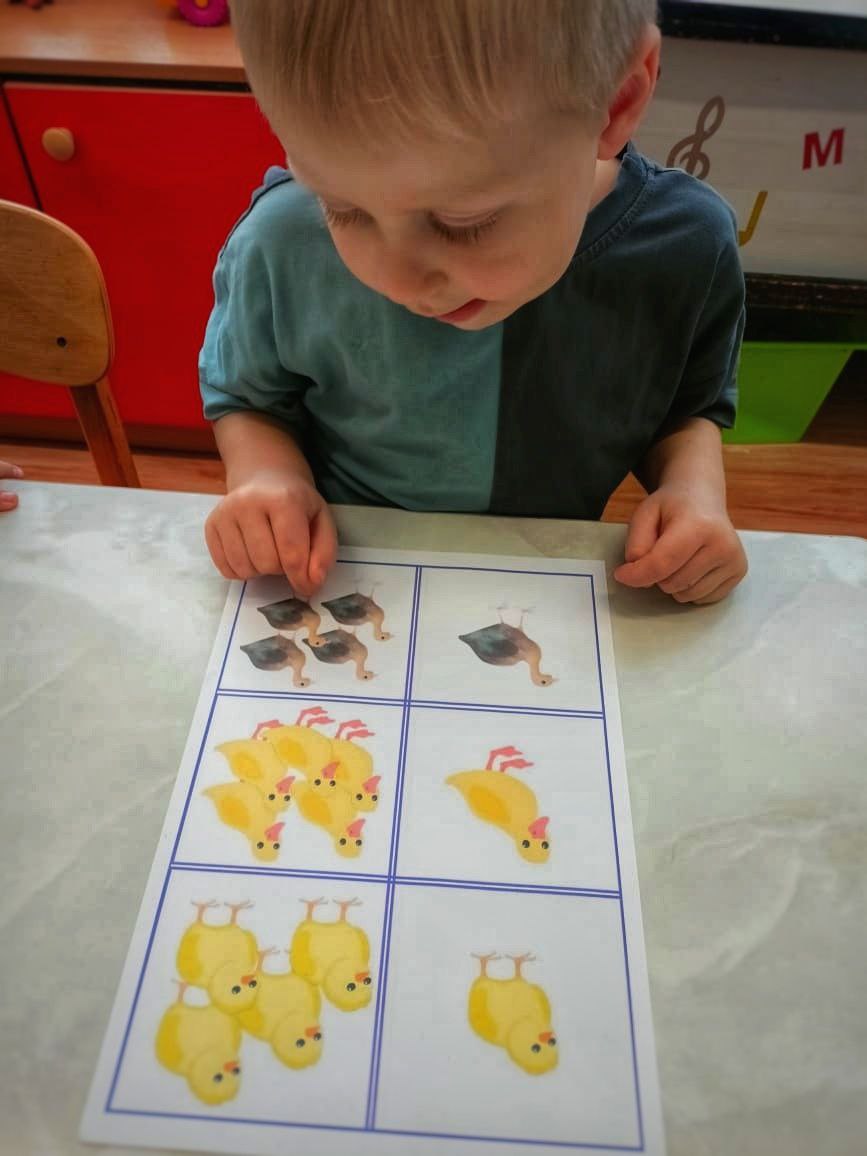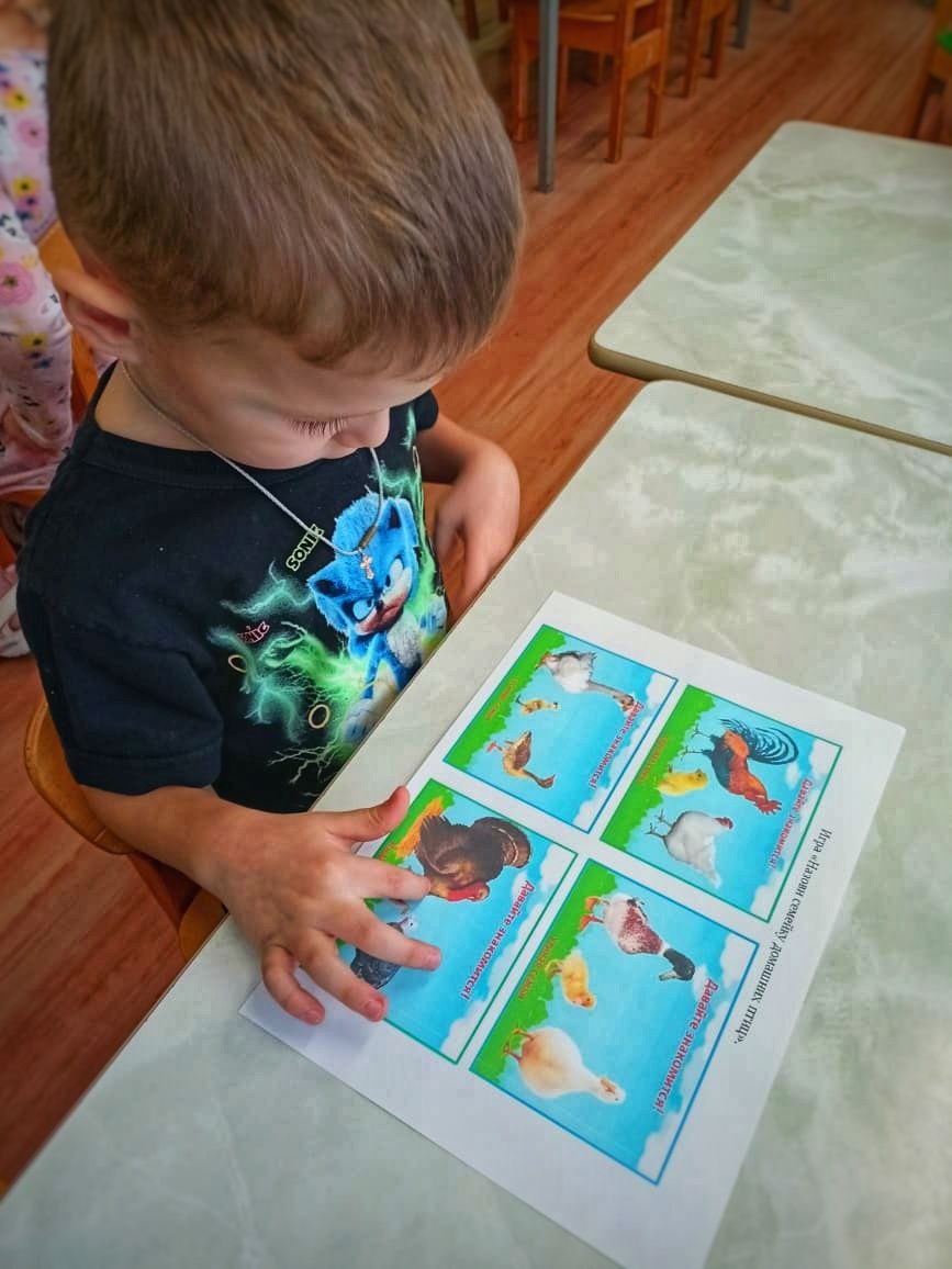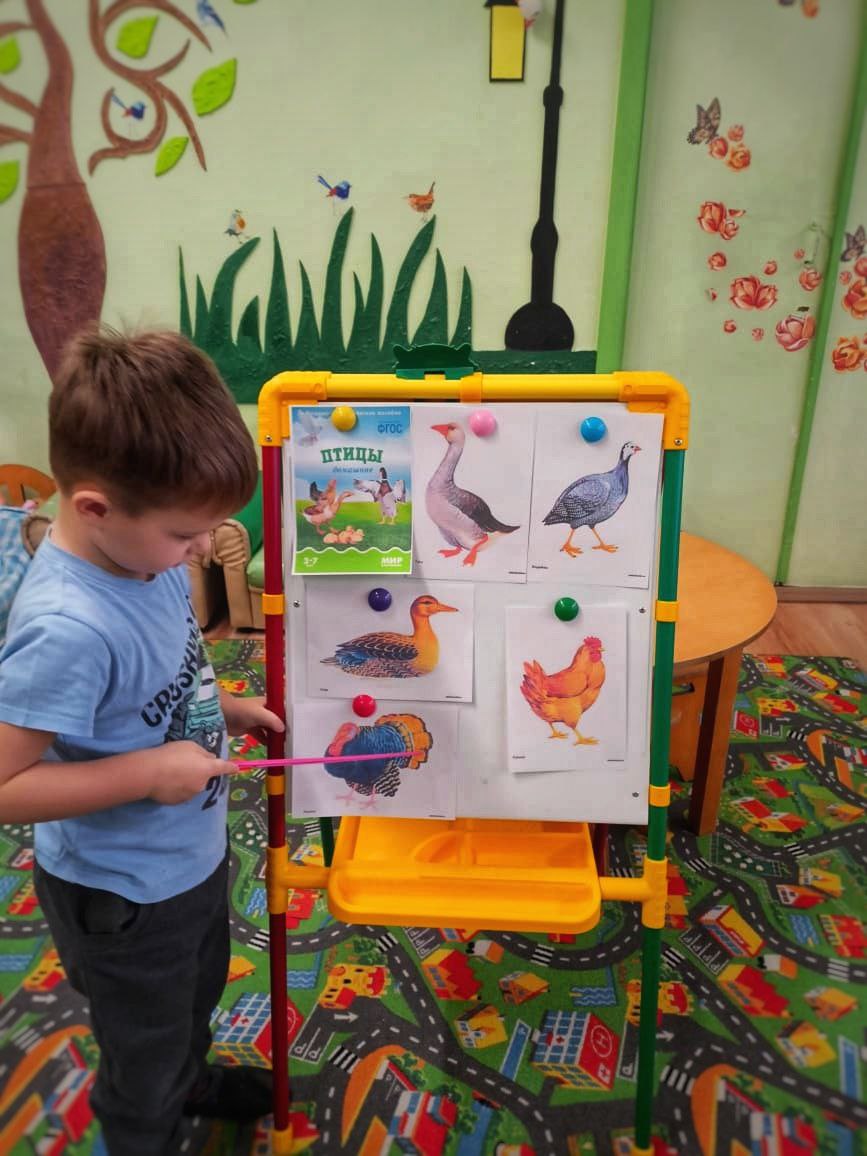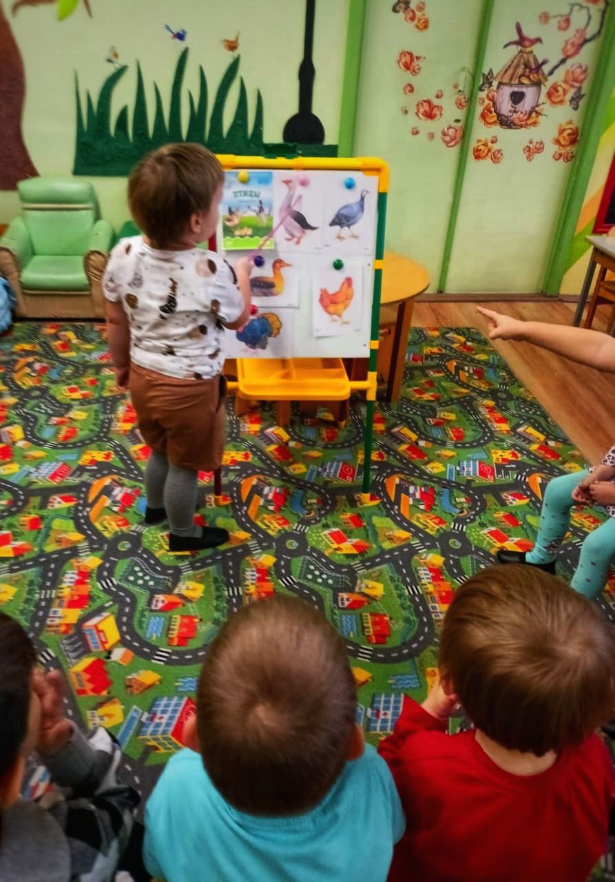 "Увлекательная математика" - лексическая тема "Домашние птицы" - воспитанники младшей группы №43 рассмотрели изображения домашних птиц, послушали их голоса и определили, кто так кричит, находя соответствующую птицу на картинке, научились правильно называть детёнышей птиц, а также пограли в игру "Один и много".