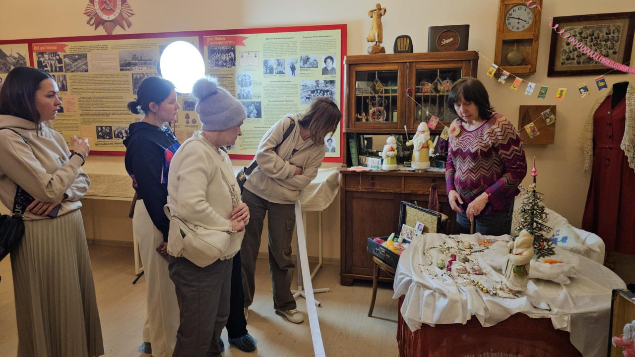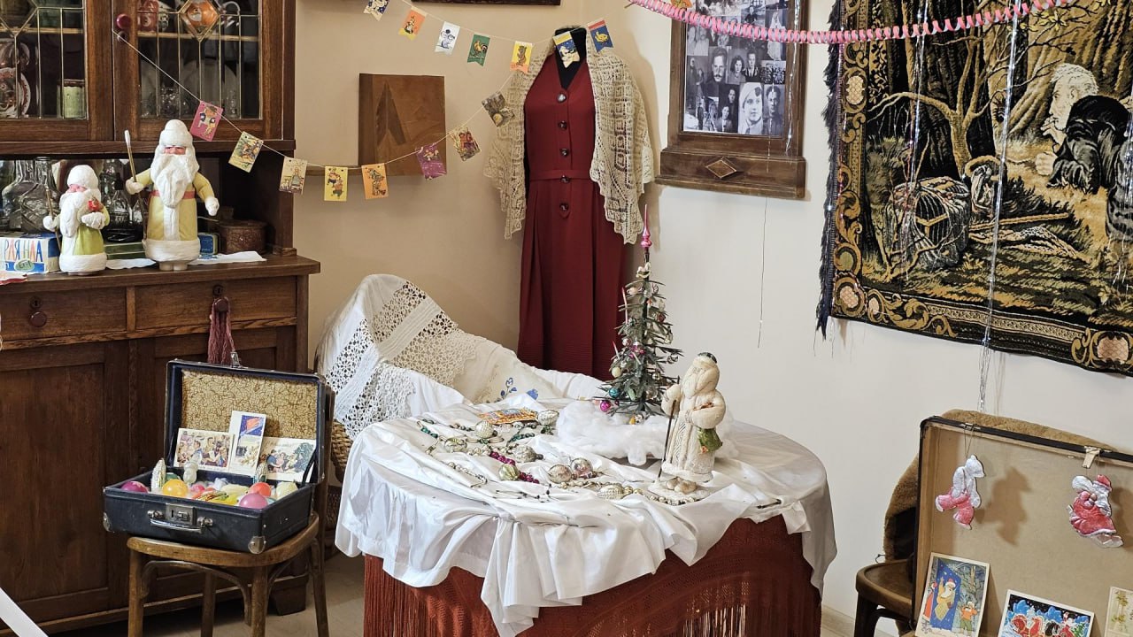 На этот раз гостей погрузили в мир новогодних традиций и познакомили с редким ватным Дедом Морозом 1940х годов.