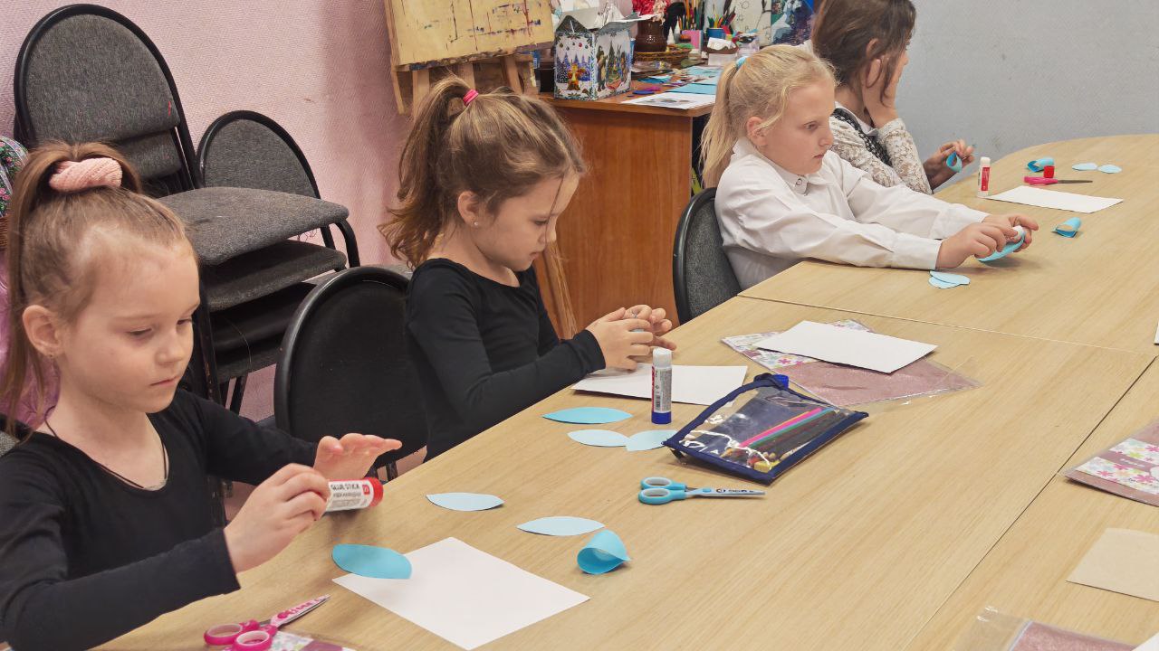 Мальчишки и девчонки, делали новогодние шары из бумаги. Все, что им понадобилось — это бумага, ножницы и клей. Ребята с удовольствием окунулись в работу. Во время работы ребята узнали историю возникновения традиции украшения ёлки игрушками, основные виды украшений и их символическое значение.
