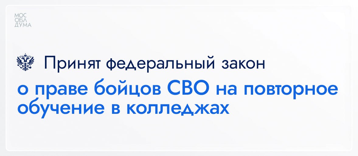 На федеральном уровне принят и подписан Президентом РФ закон о предоставлении права участникам СВО на бесплатное второе среднее профессиональное образование.