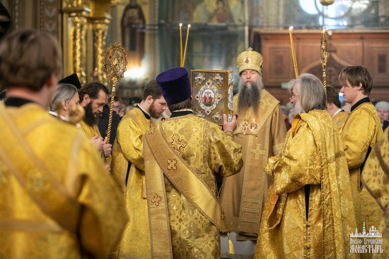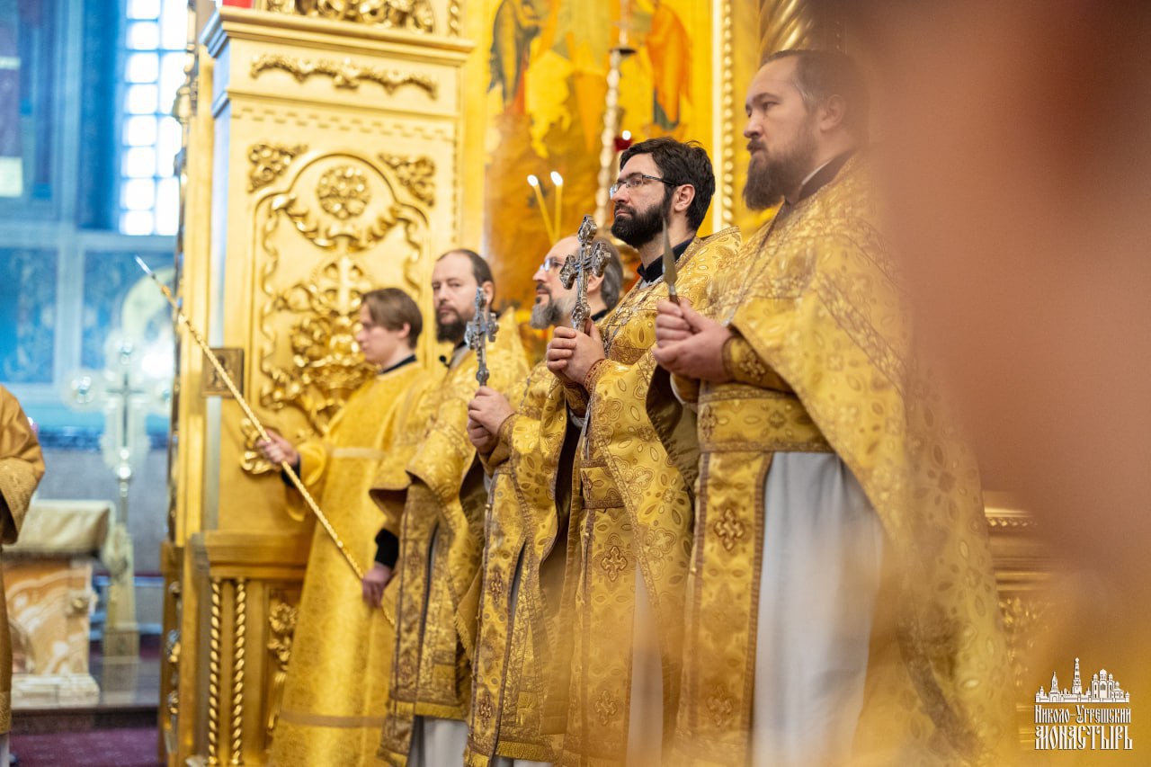 Николо-Угрешского монастыря праздник божественную литургию в Спасо-Преображенском соборе возглавил епископ Егорьевский Мефодий, наместник святыни.
