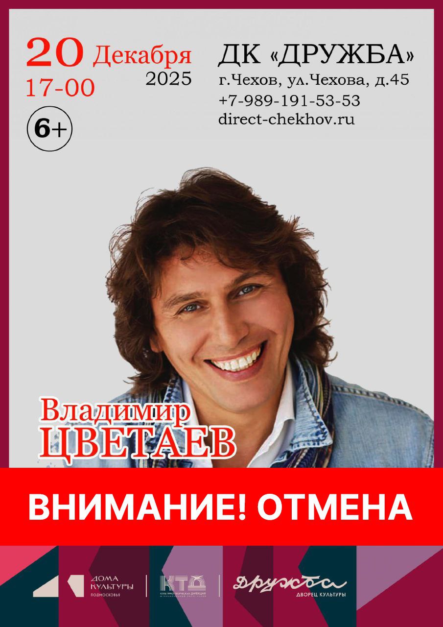 К сожалению, концерт Владимира Цветаева, который должен состояться 20 декабря 2025 - ОТМЕНЕН.