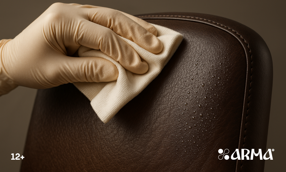 Чистка кожаных стульев состоит из нескольких последовательно выполняемых шагов: