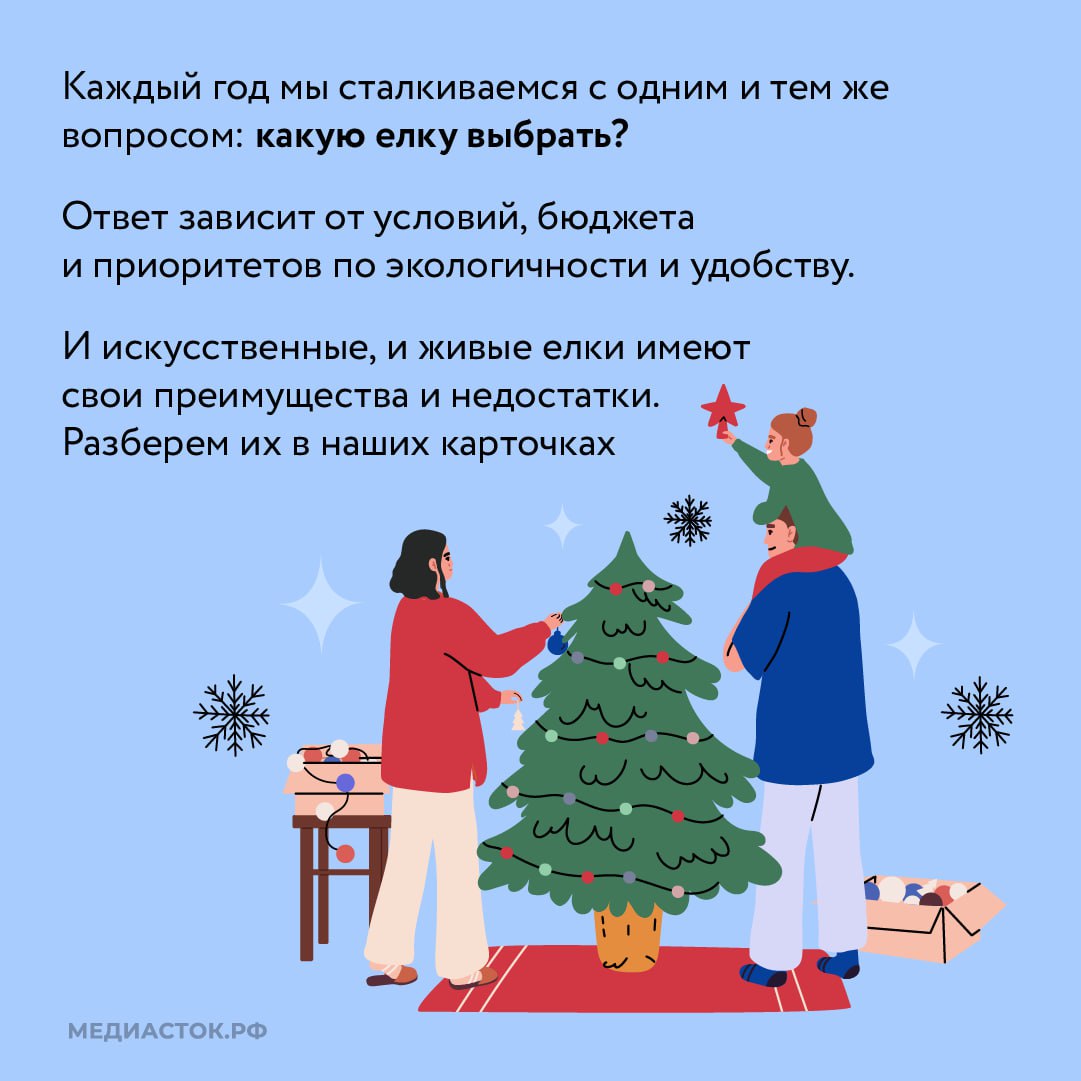 Какое дерево прослужит дольше, что безопаснее для экологии и как выбрать ту самую елочку – читайте в карточках.