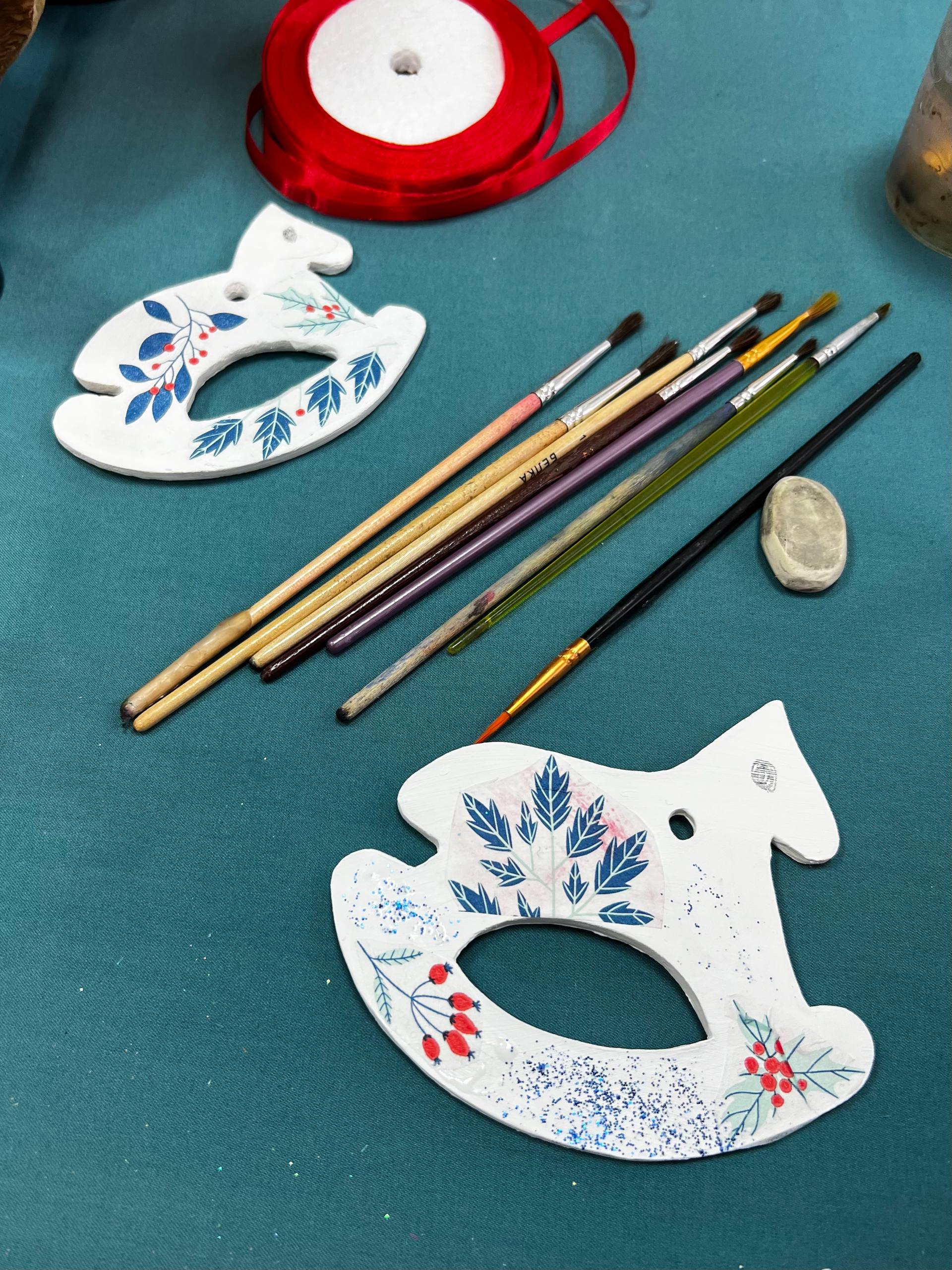 Расписывали лошадок акриловыми красками, работали в технике «декупаж», заряжались новогодним настроением. Делимся нашими результатами!