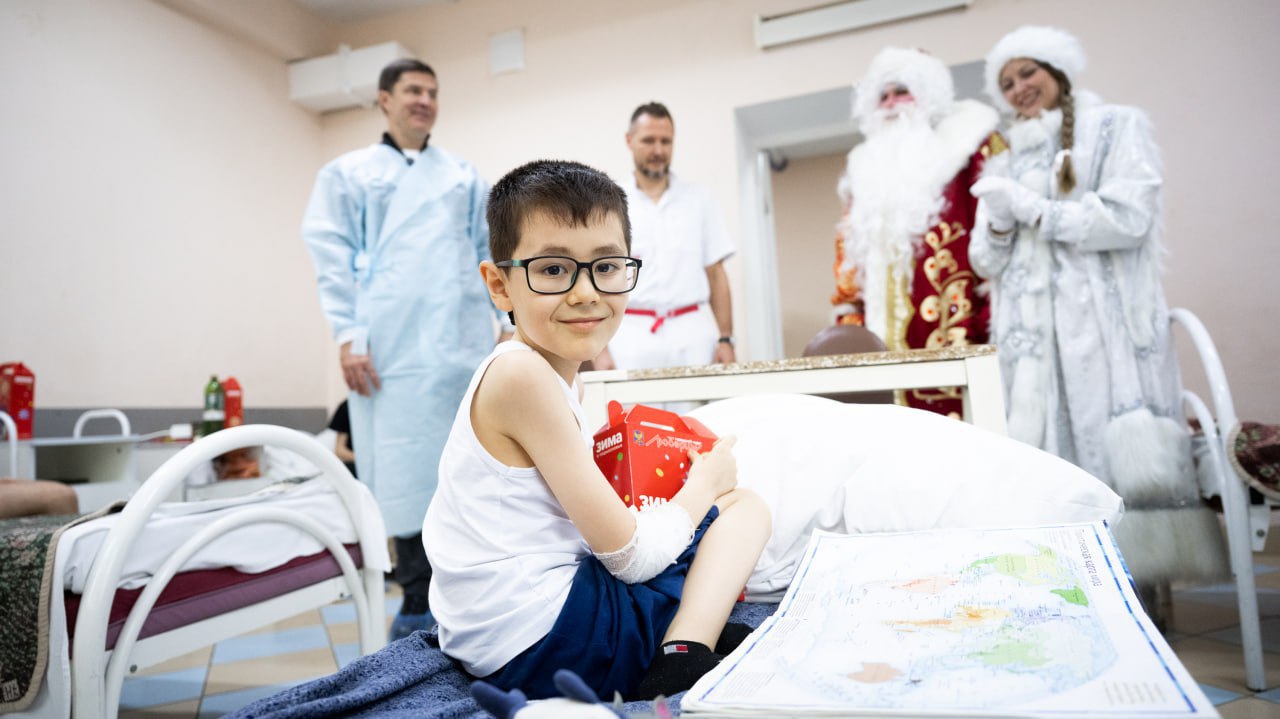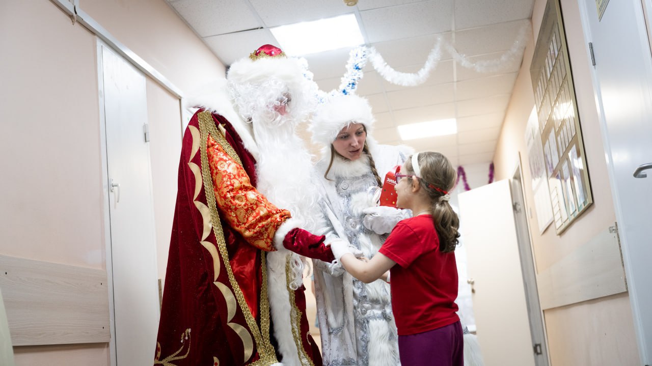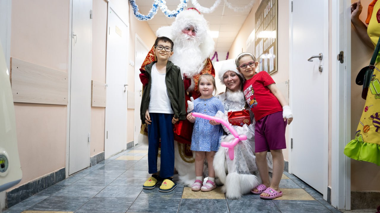 Вместе с главой округа к ребятам пришли в гости — Дед Мороз, Снегурочка и их помощница Бусинка. В атмосфере сказки и волшебства они обошли палаты, чтобы лично пообщаться с маленькими пациентами, поддержать их и вручить каждому сладкий подарок.