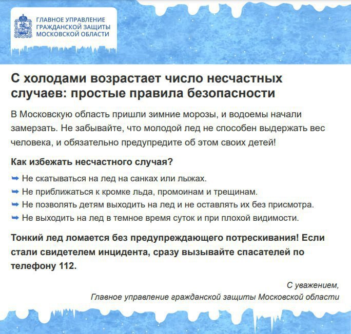 Напоминаем, несоблюдение правил безопасности на водных объектах в зимний период часто становится причиной гибели и травматизма людей. Лед до наступления устойчивых морозов непрочен.