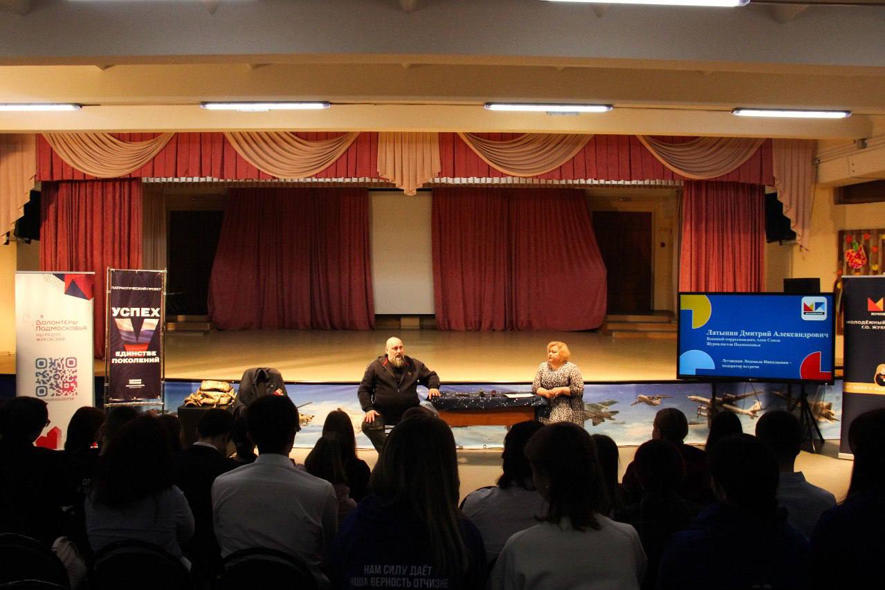 На мероприятии выступил военный корреспондент, участник Специальной Военной Операции, член Союза журналистов Подмосковья Дмитрий Латынин. Он поделился историей своего профессионального пути, объяснил, почему решил стать военкором, и ответил на вопросы участников форума.